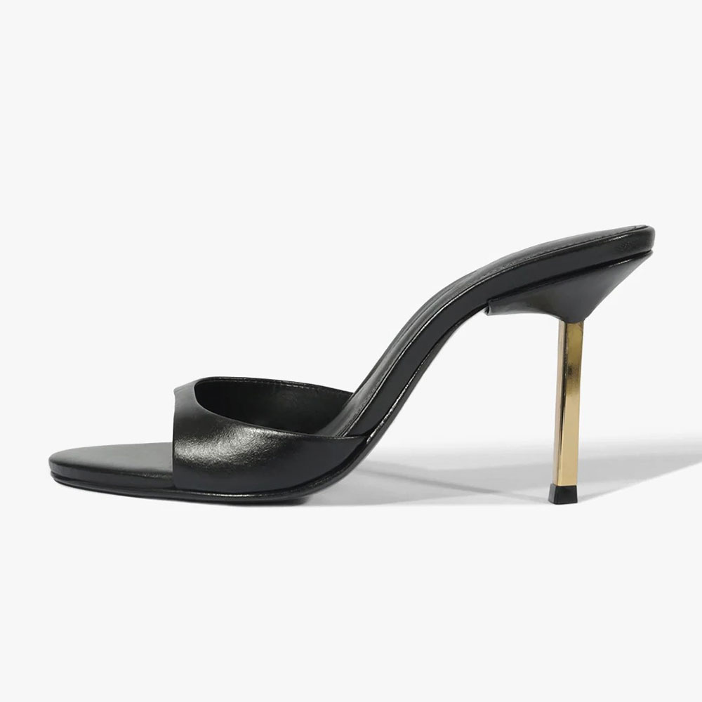 Chic Black Open Round Toe Stiletto Heel Slip On Mules for Women