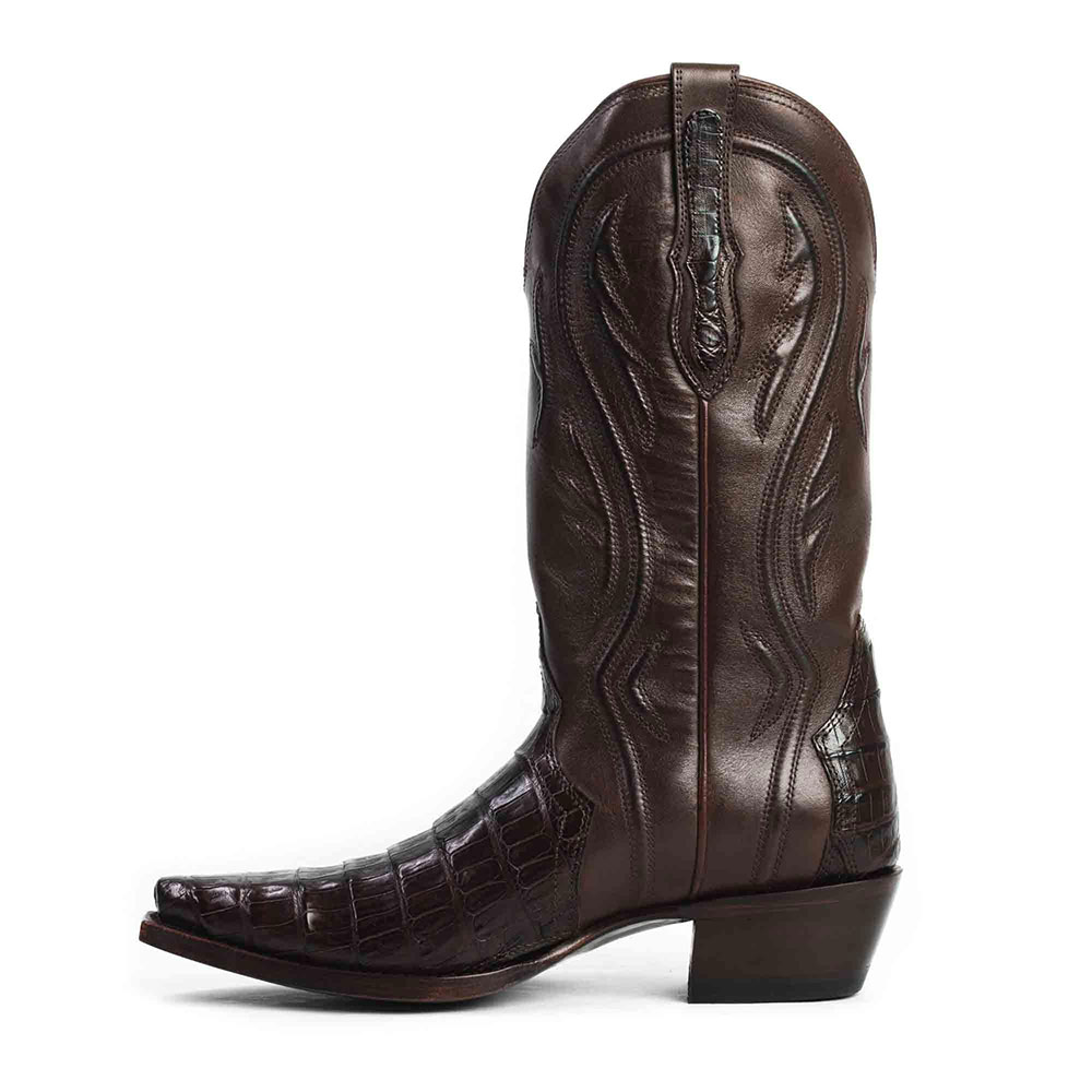 Chic Brown Snip Toe Chunky Heel Croc Embossed Western Boots for Women