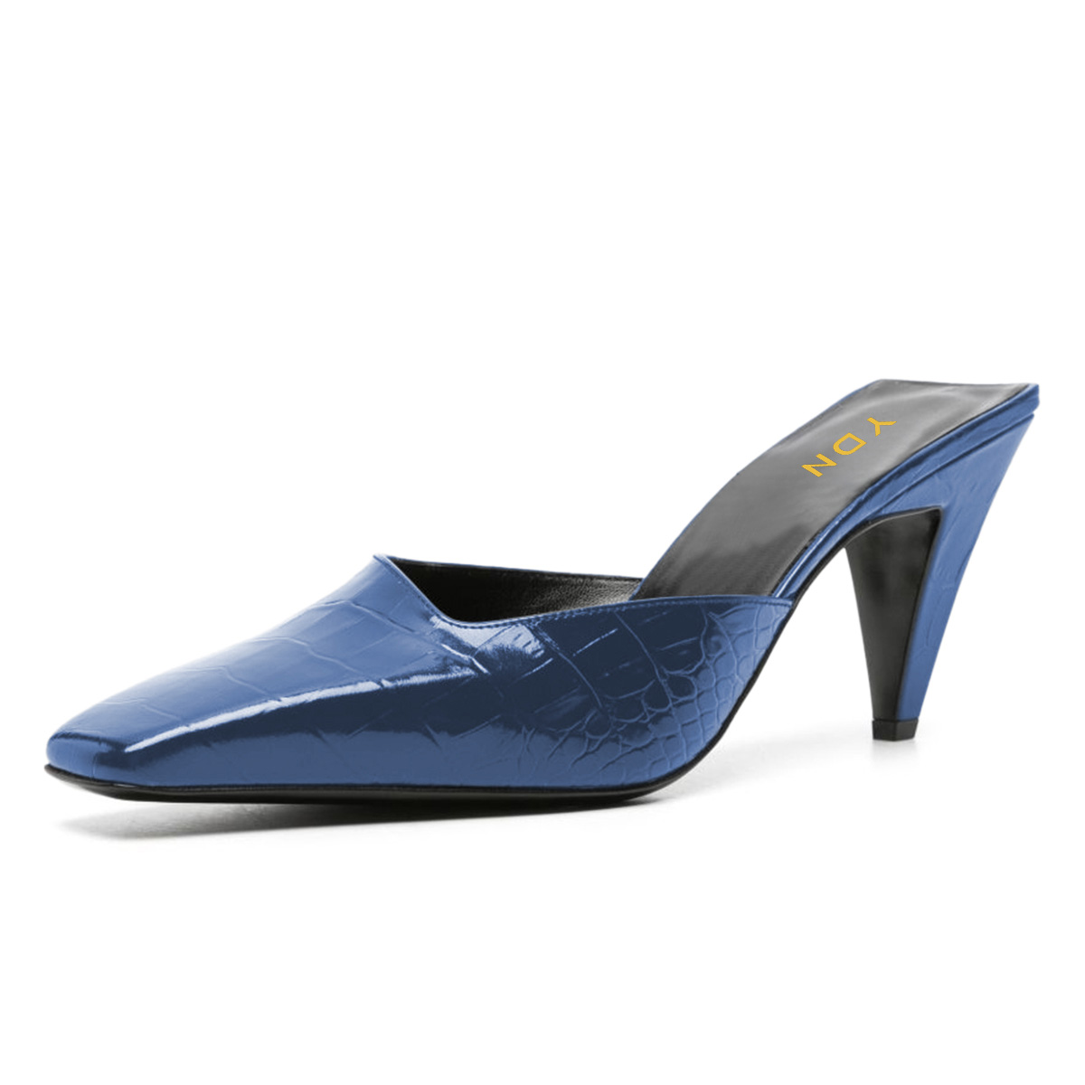 • Special Designs: The square-toe heeled mules feature cone heels and a chic crocodile embossed design.