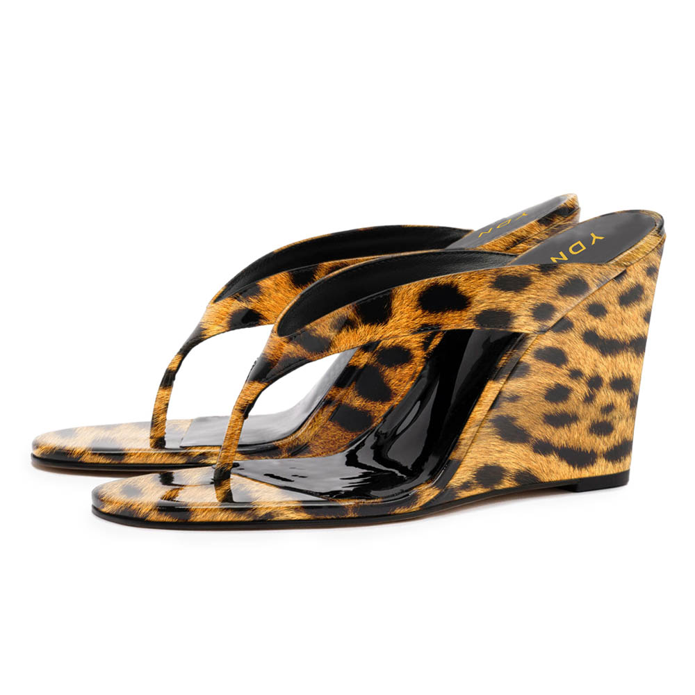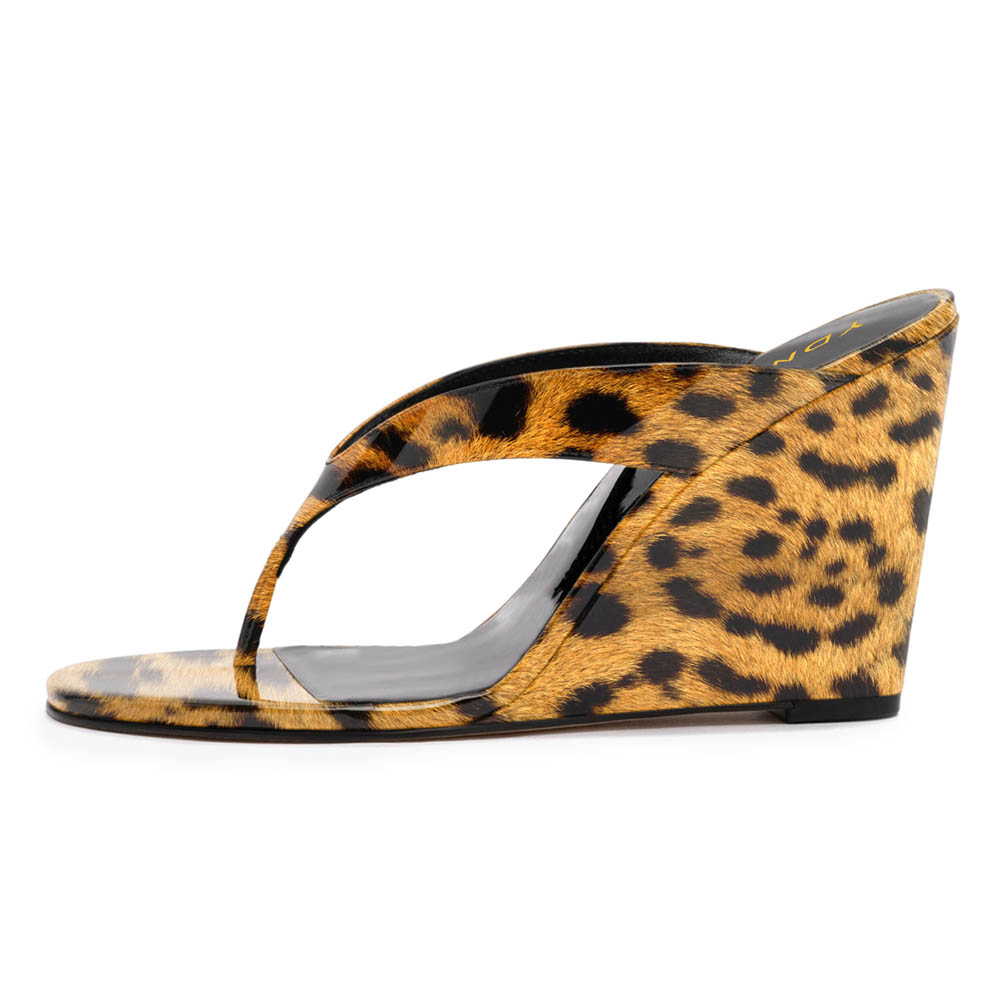 Chic Leopard Print Open Toe Flip Flop Wedge Sandals for Women