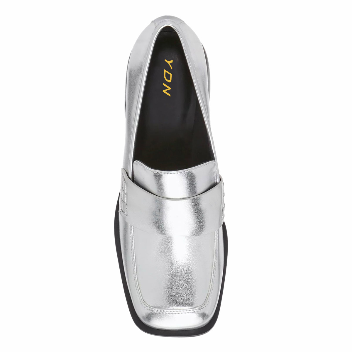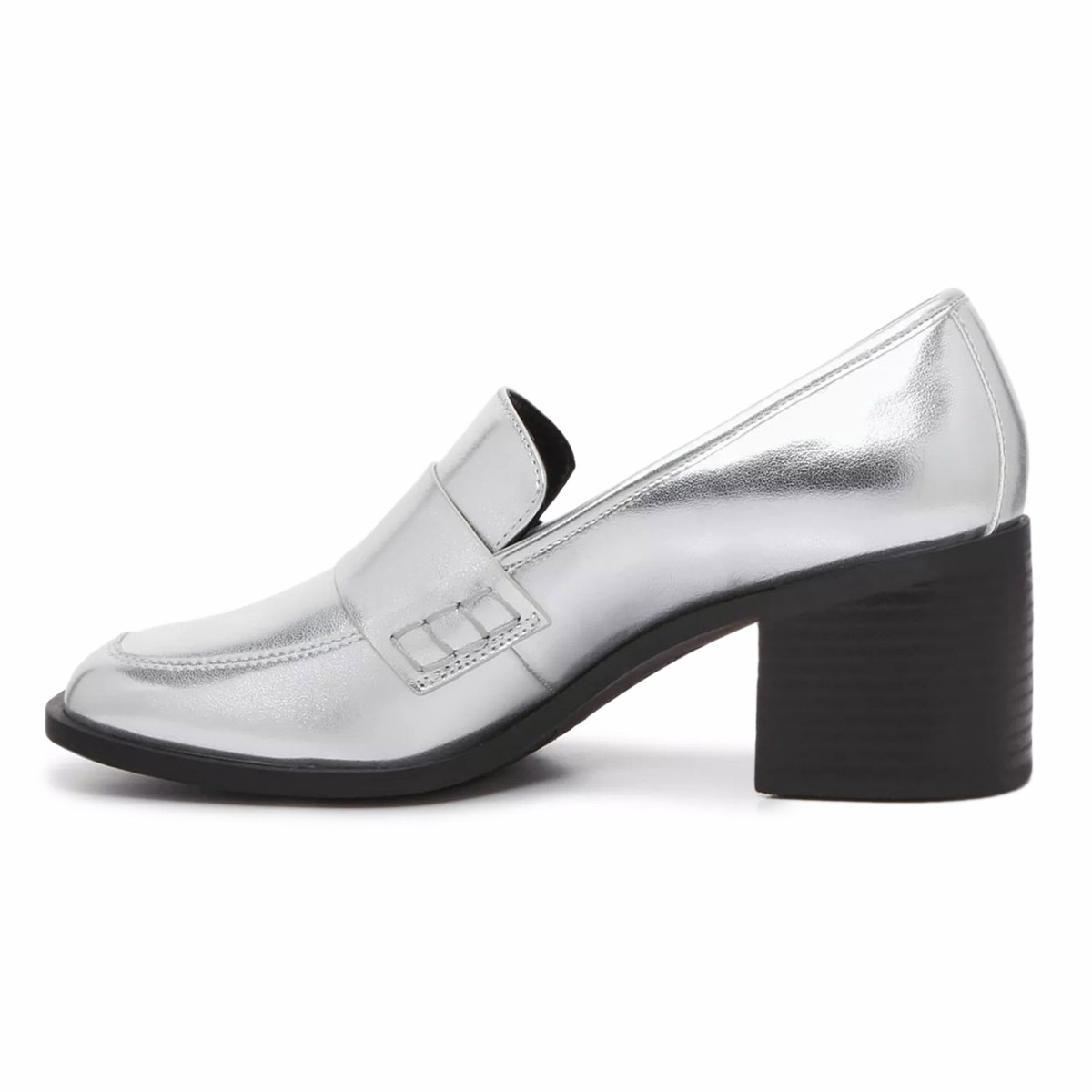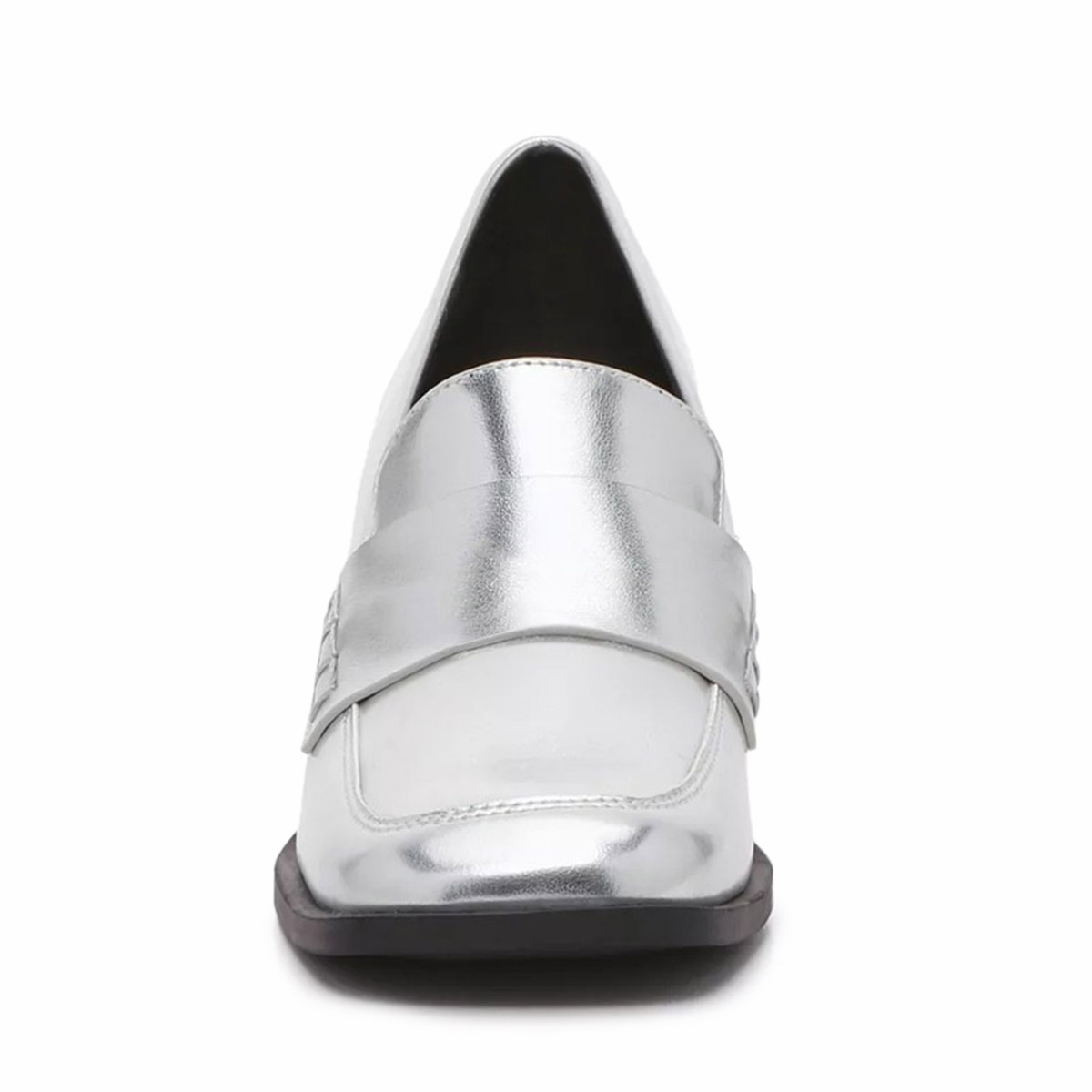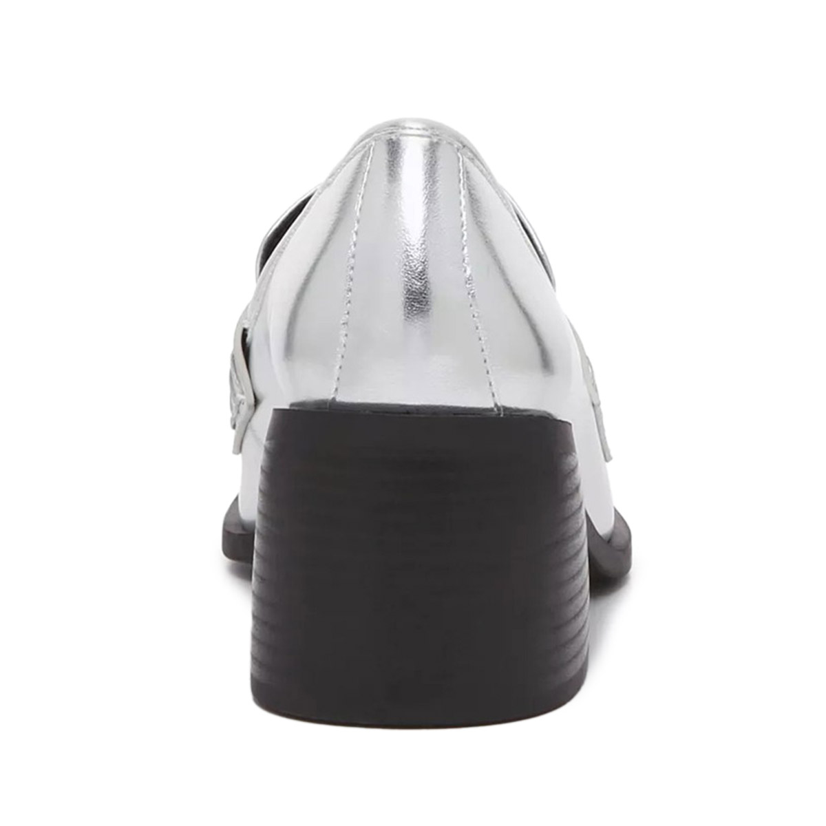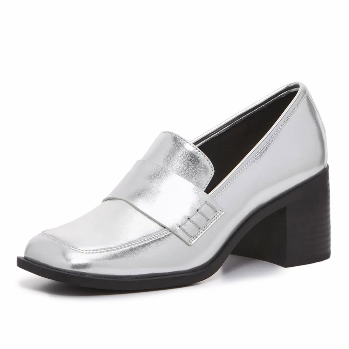 Chic Metallic Finish Slip-On Square-Toe Loafer Heels in Silver