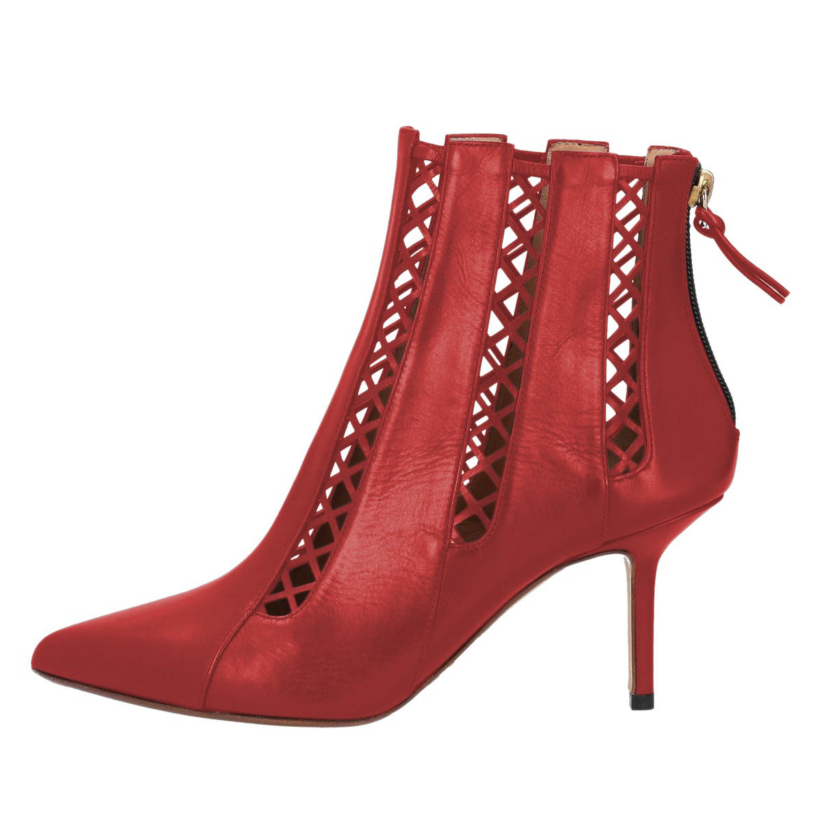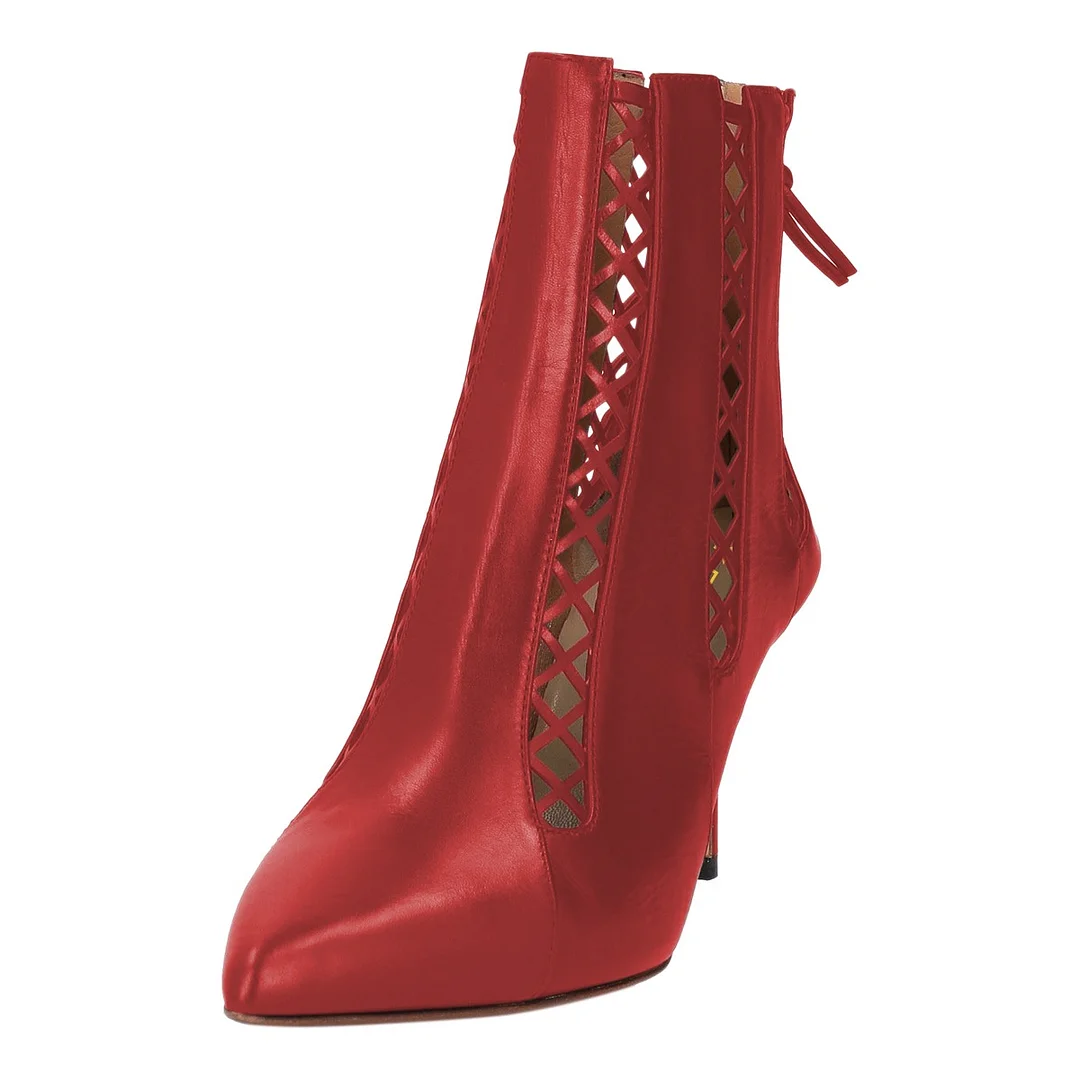 Chic Red Pointed Toe Zipper Lattice Cut Out Booties for Women