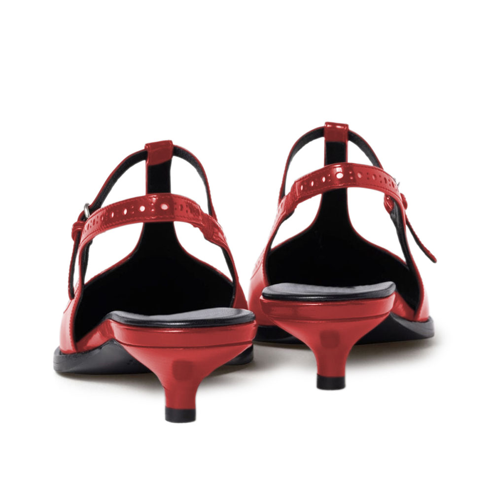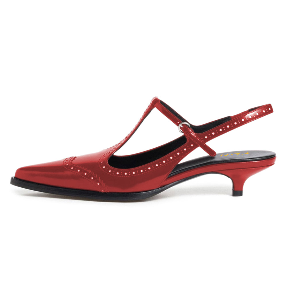 Chic Red Vegan Leather Kitten Heel Pointed Toe Slingback Shoes