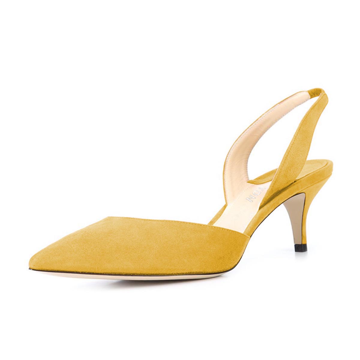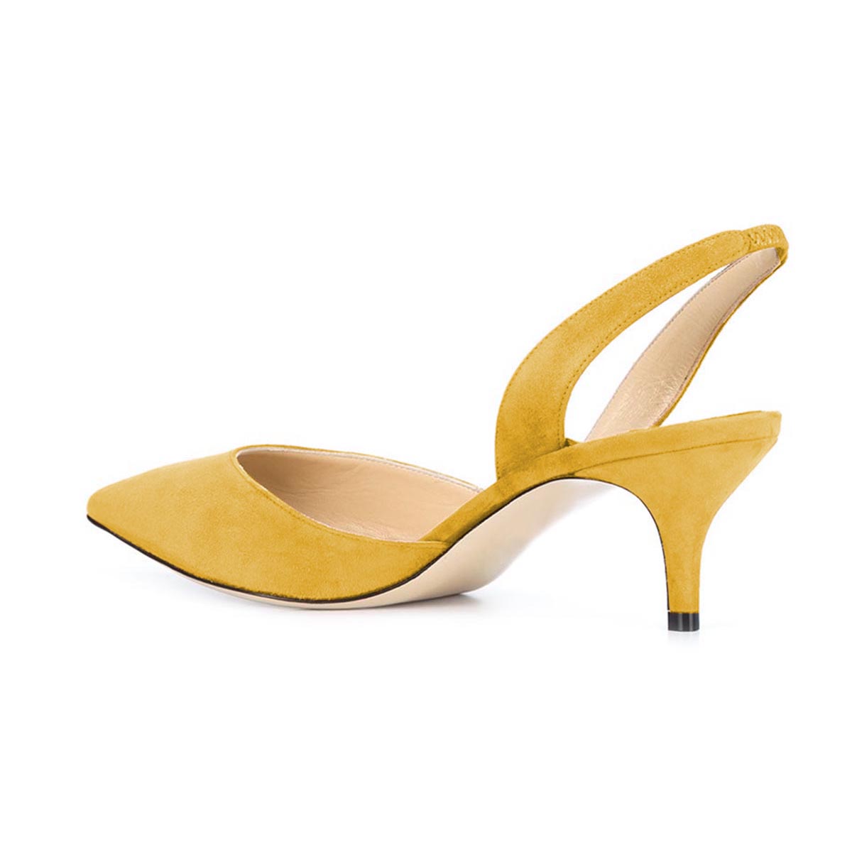 Chic Vegan Suede Pointed Toe Slingback Kitten Heels in Yellow