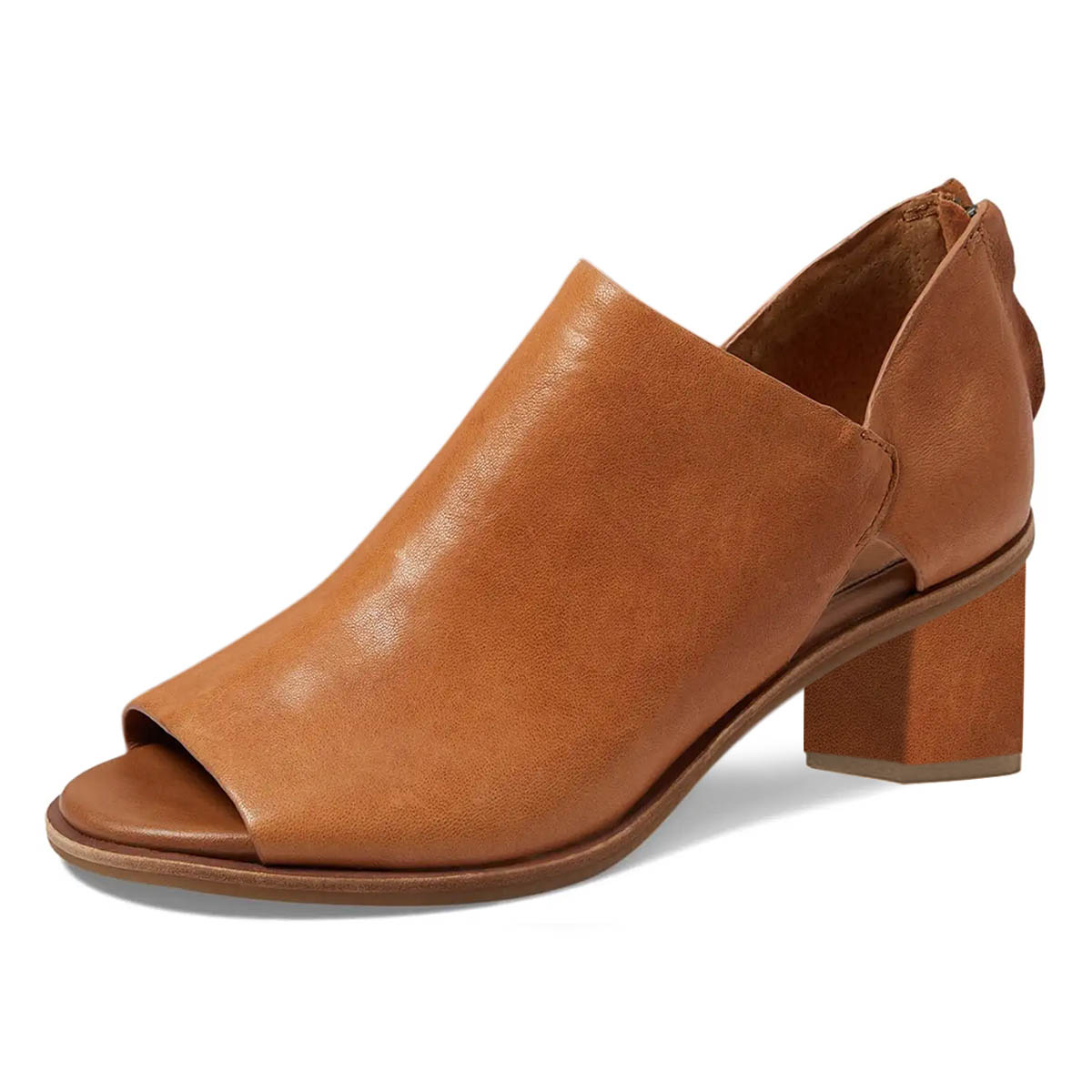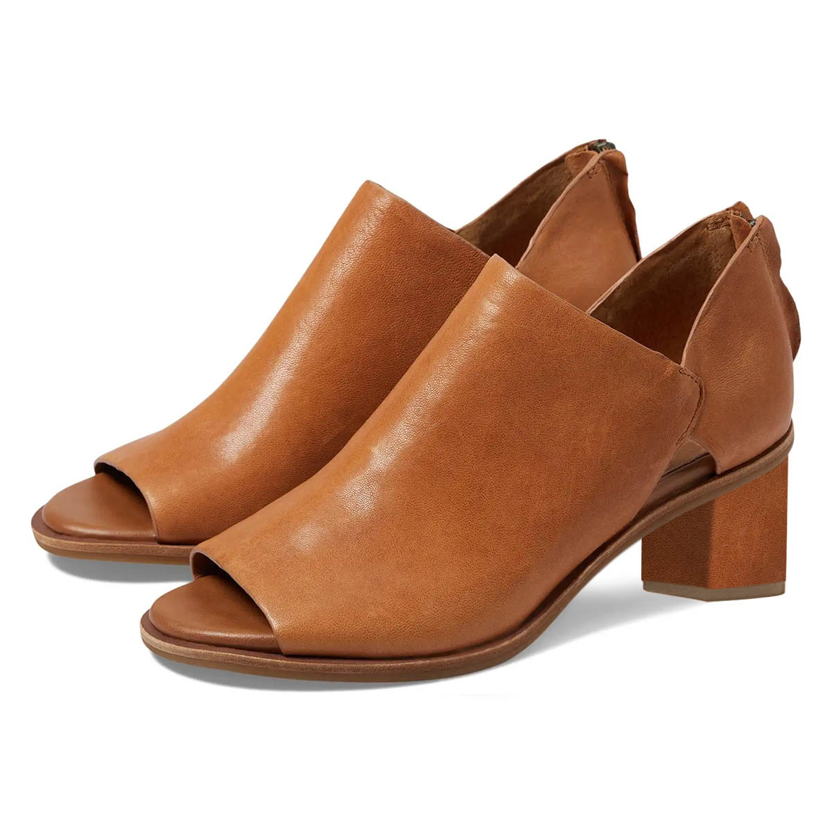Tan Peep Toe Block Heel Cut-Out Ankle Boots with Back Zipper