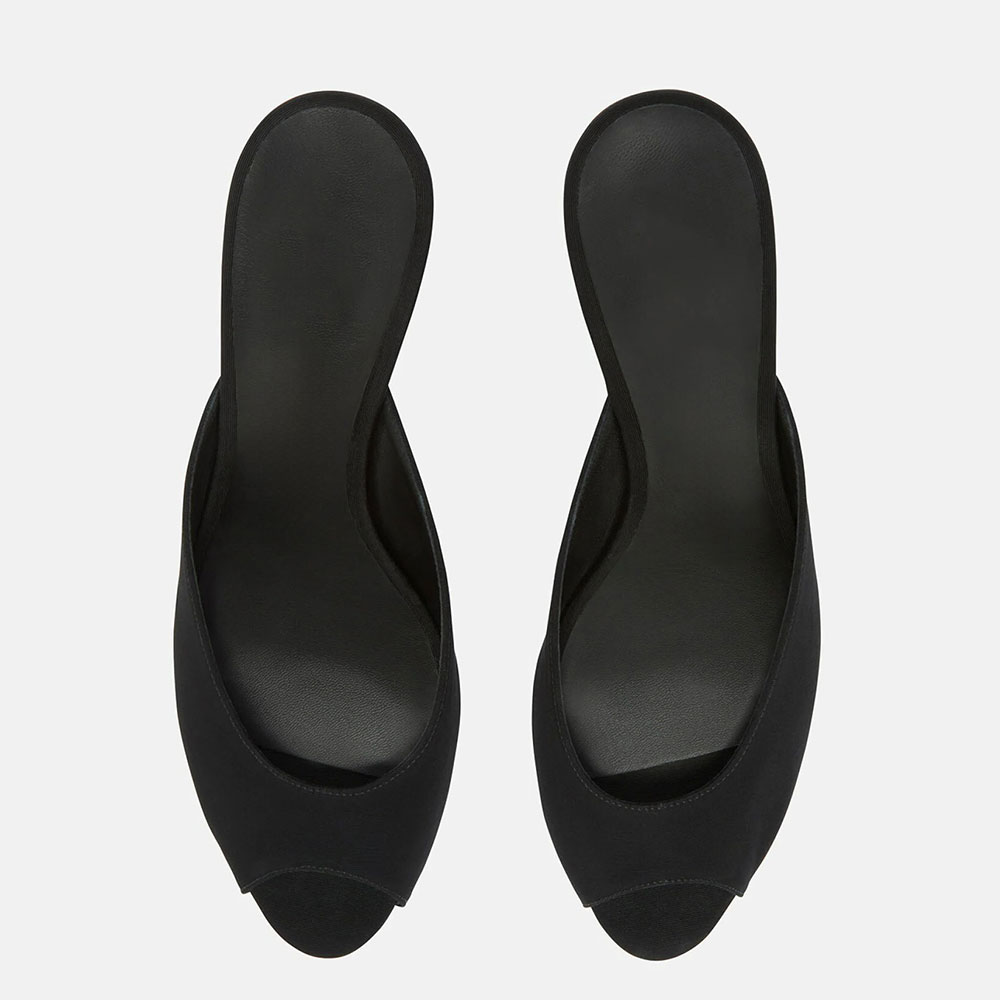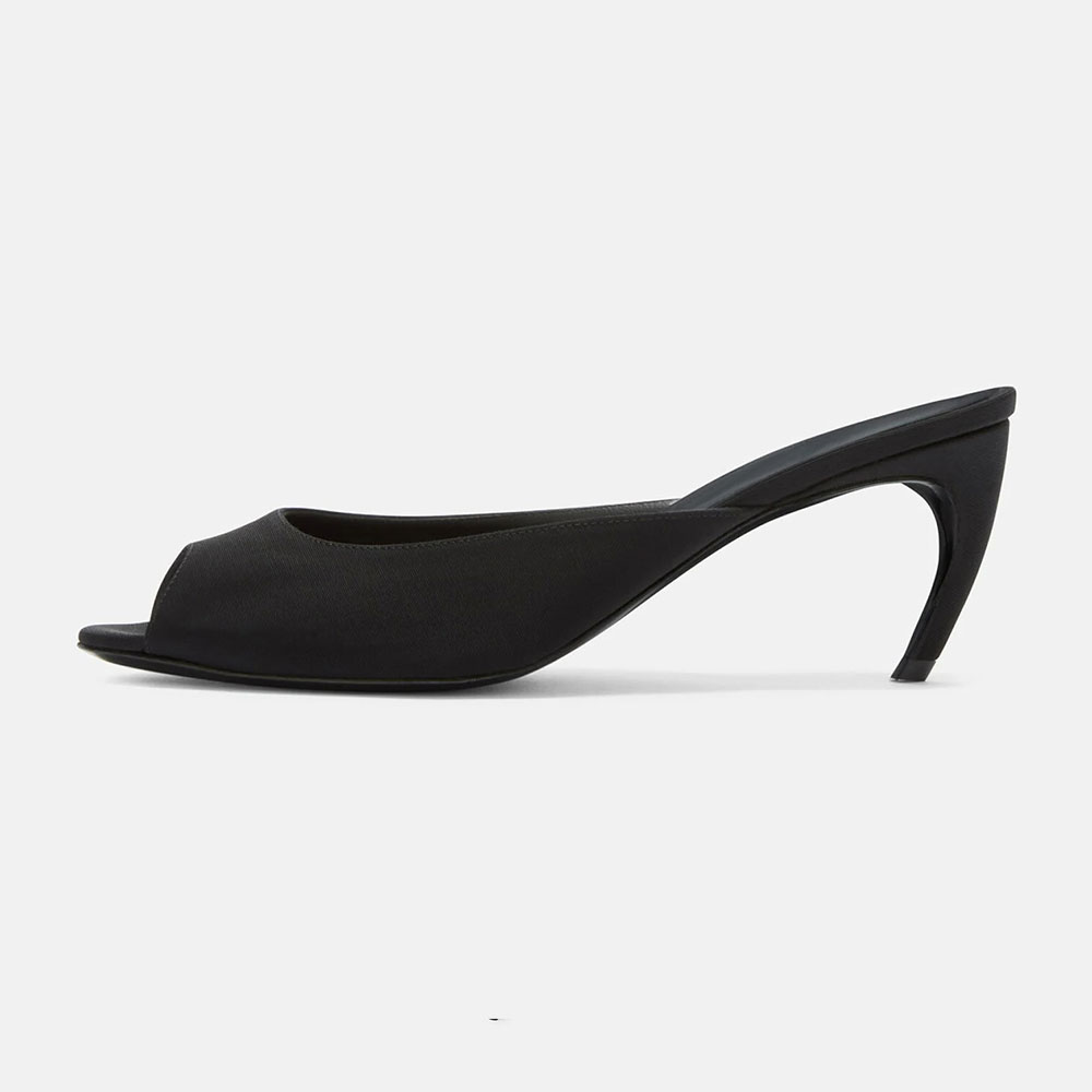 Classic Black Peep Toe Sculptural Heel Open Back Mules for Women
