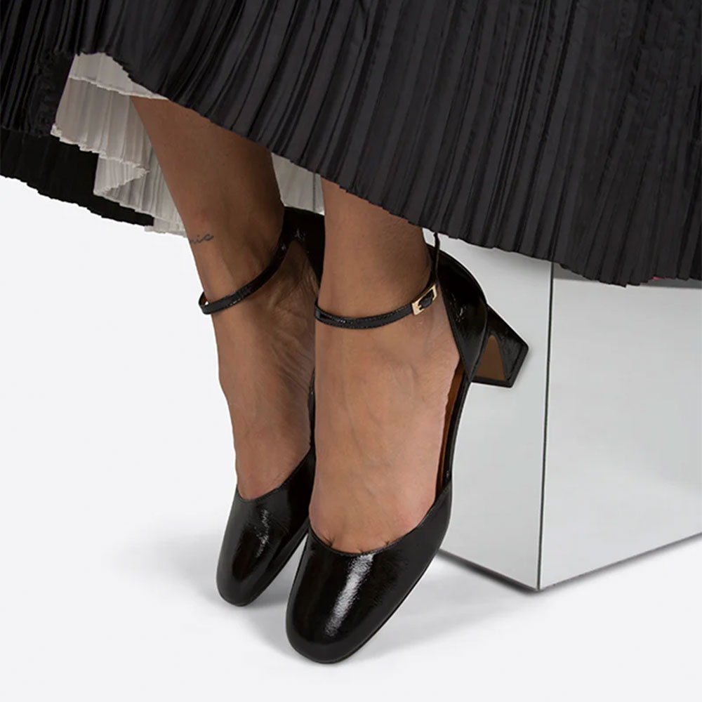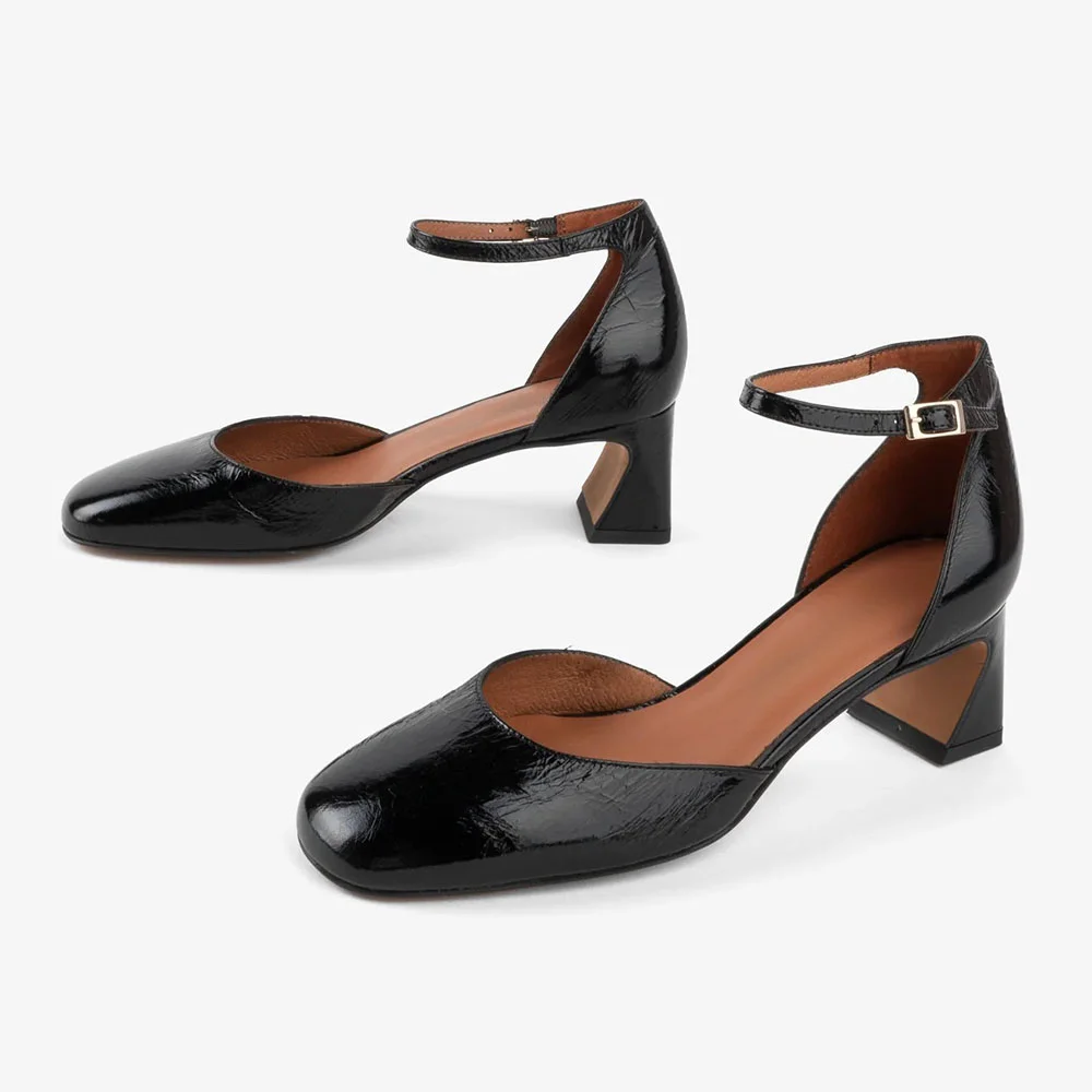 • Special Designs: The square-toe pumps feature chunky heels and an ankle buckle strap design.