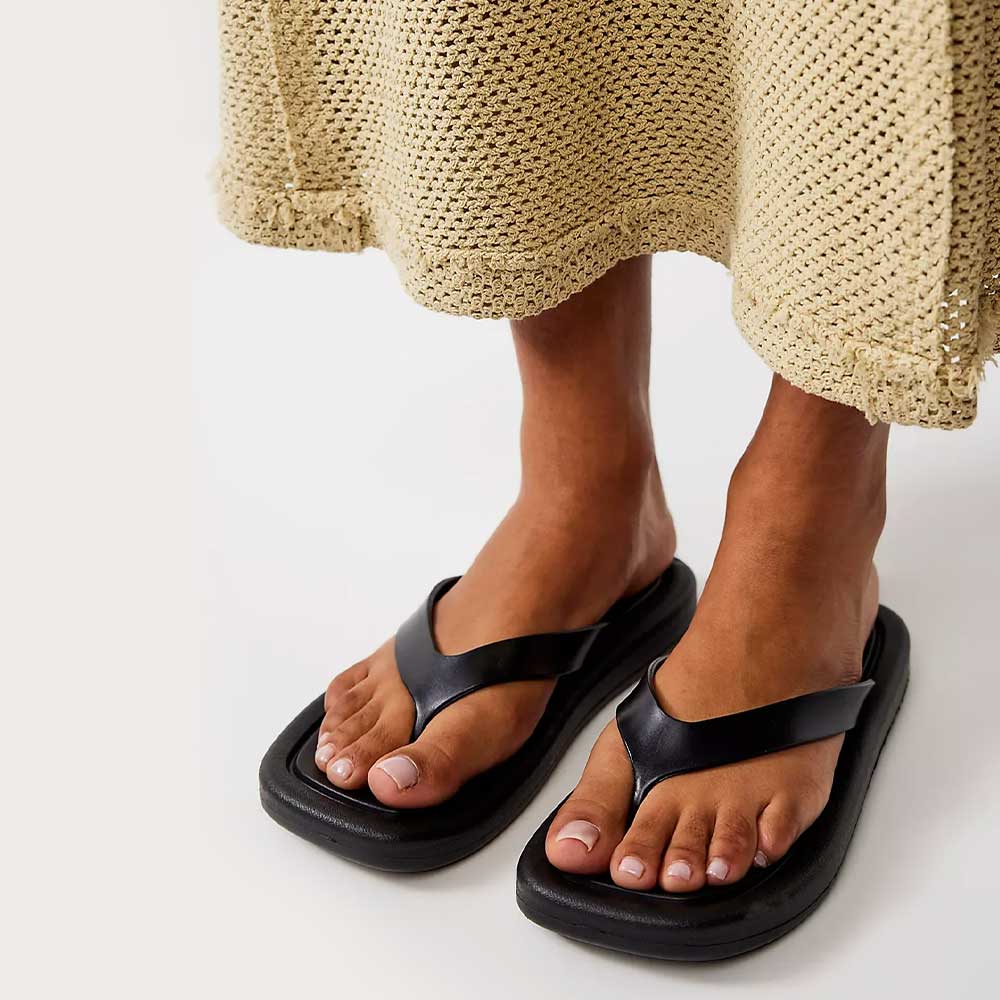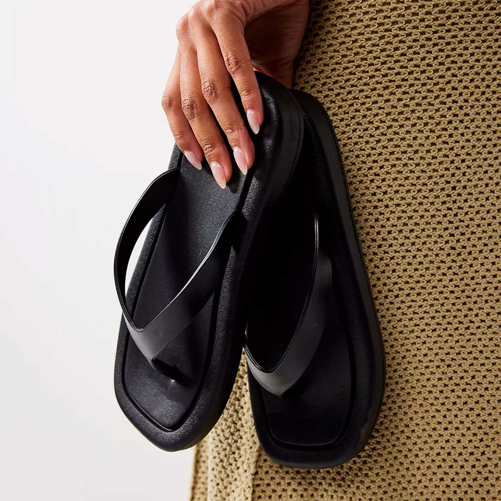 • Special Designs: The square-toe flip-flops feature a backless, slip-on design.