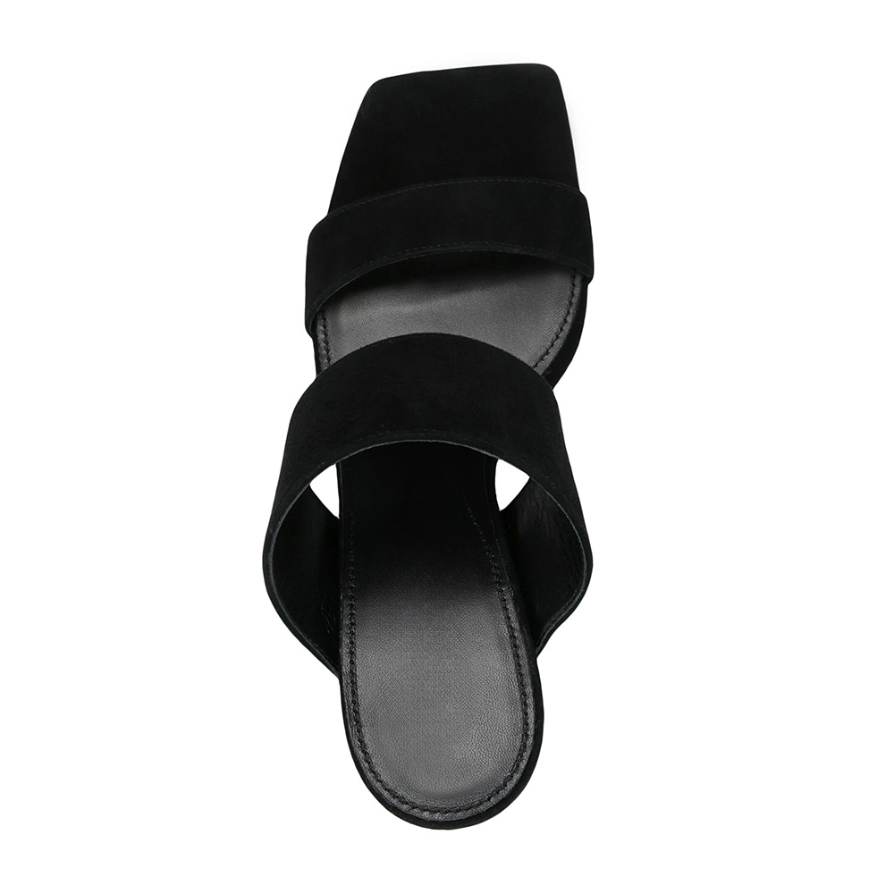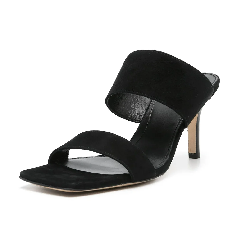Classic Black Square Toe Stiletto Heel Double Strap Mules for Women