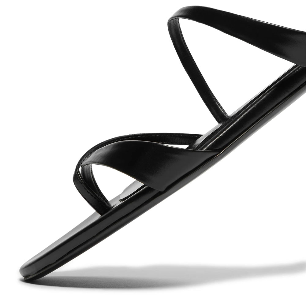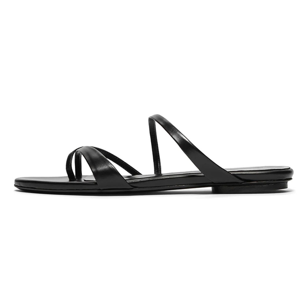 Classic Black Strappy Flip Flop Open Toe Flat Mules for Women
