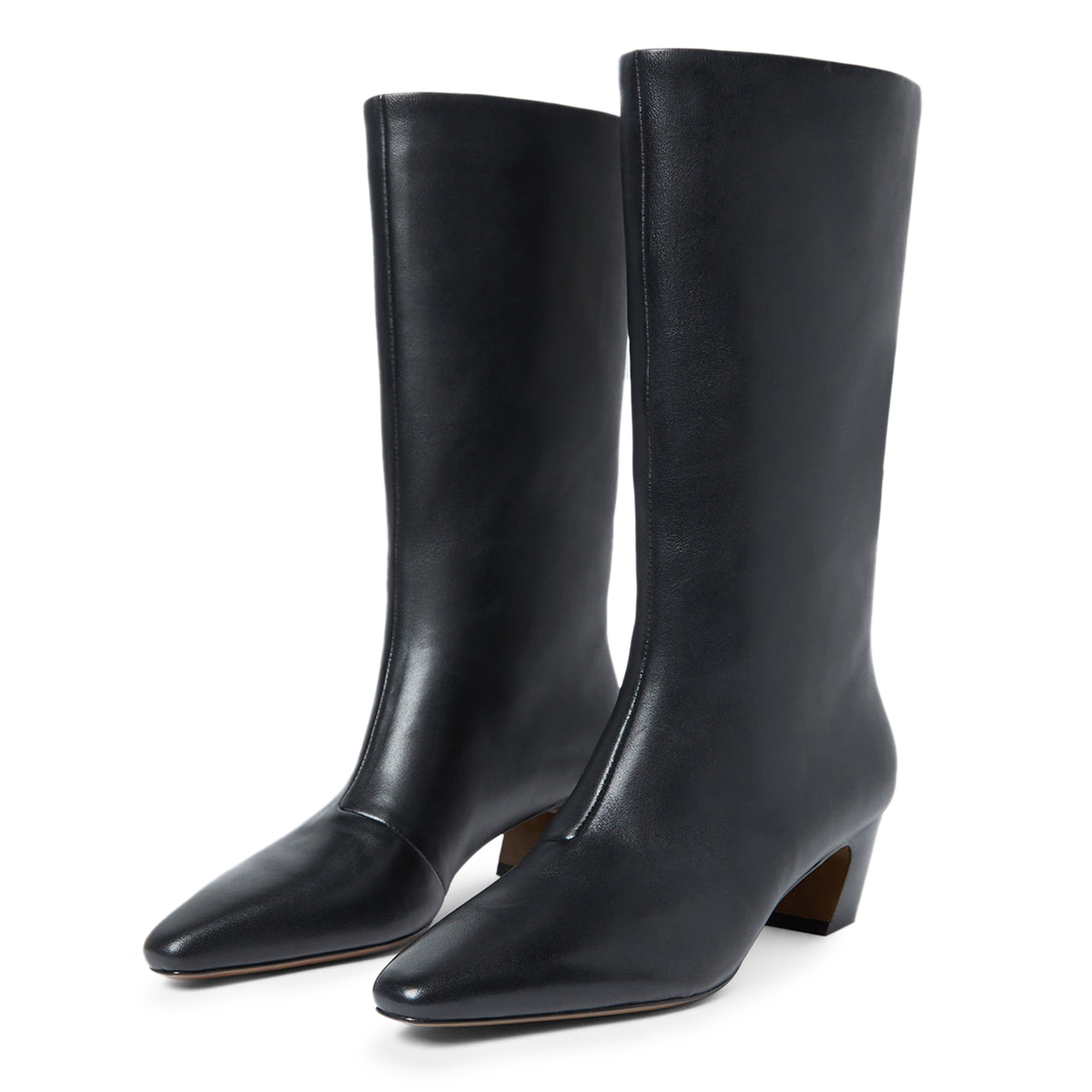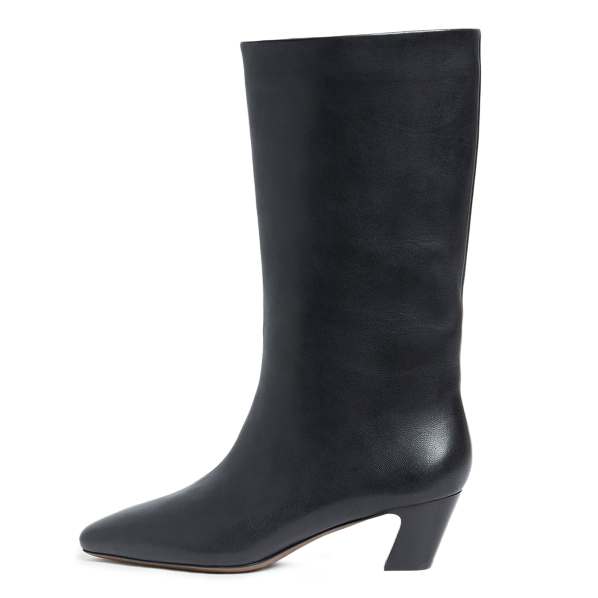 Classic Black Vegan Leather Pull-On Mid-Calf Boots with Chunky Heel