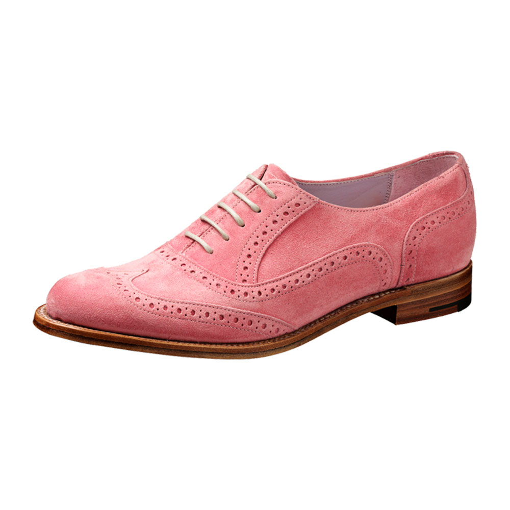Classic Pink Vegan Suede Round Toe Punched Flat Wingtip Shoes