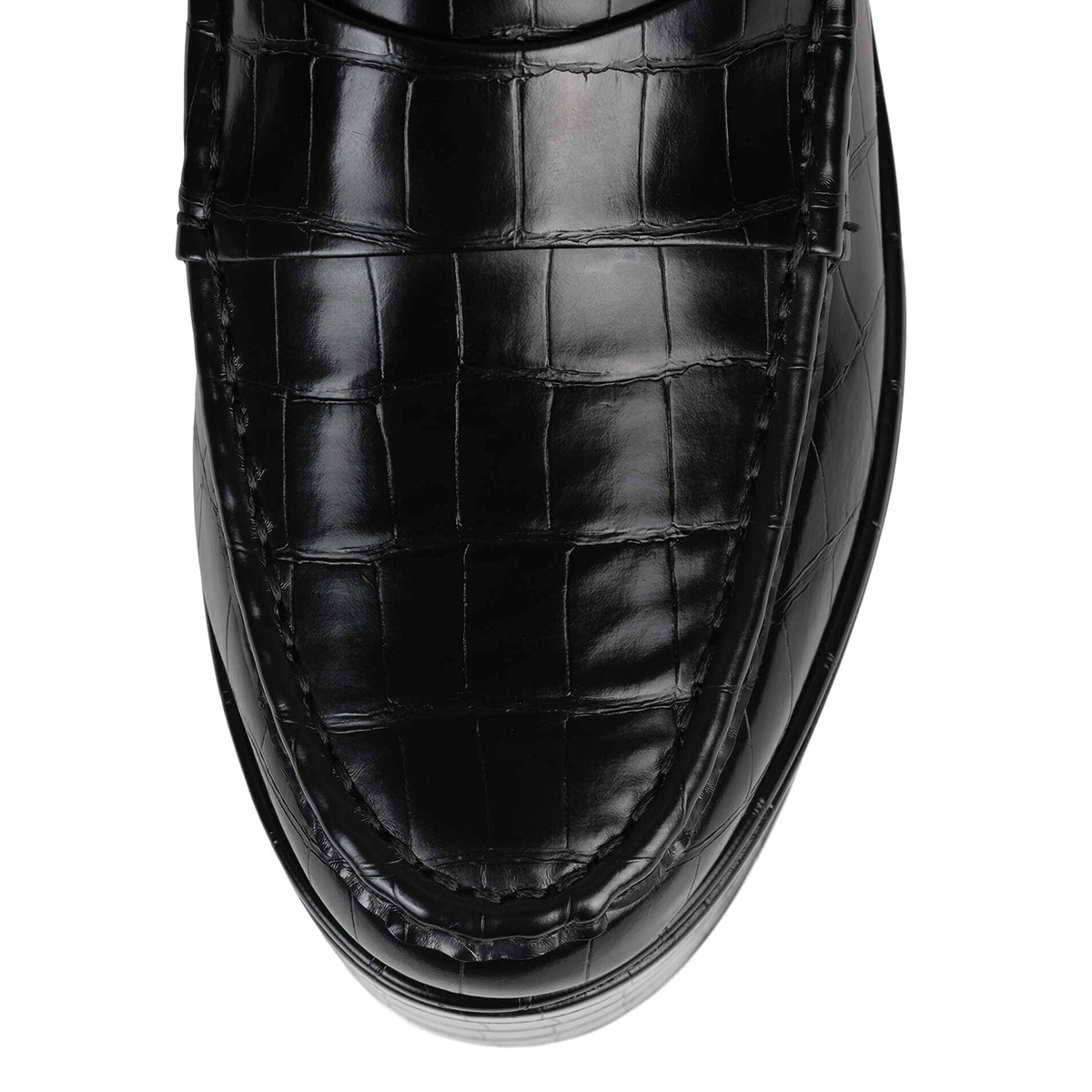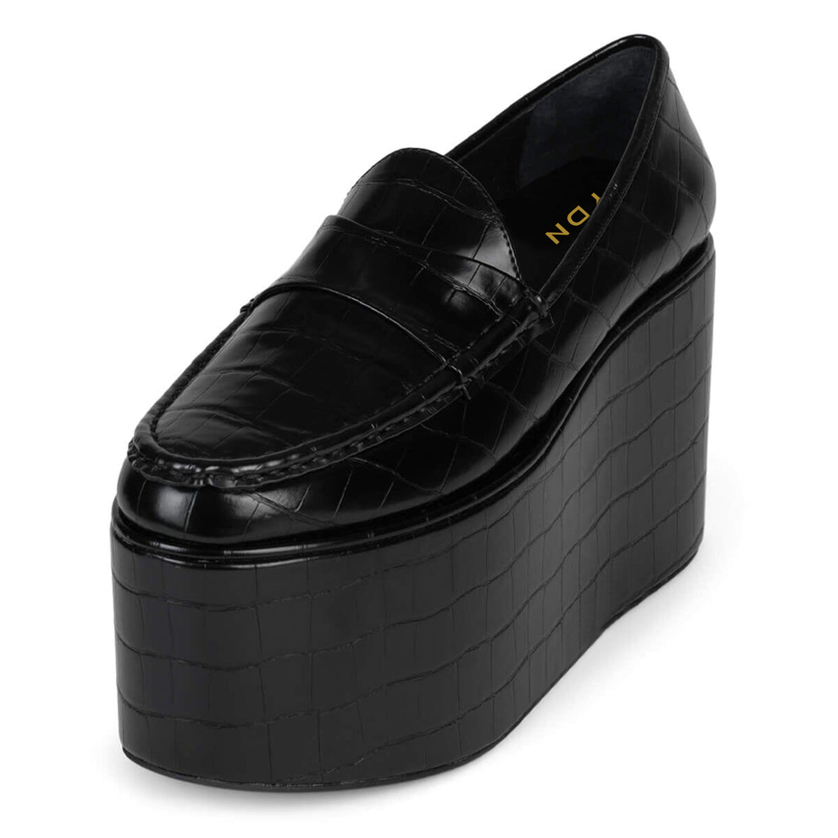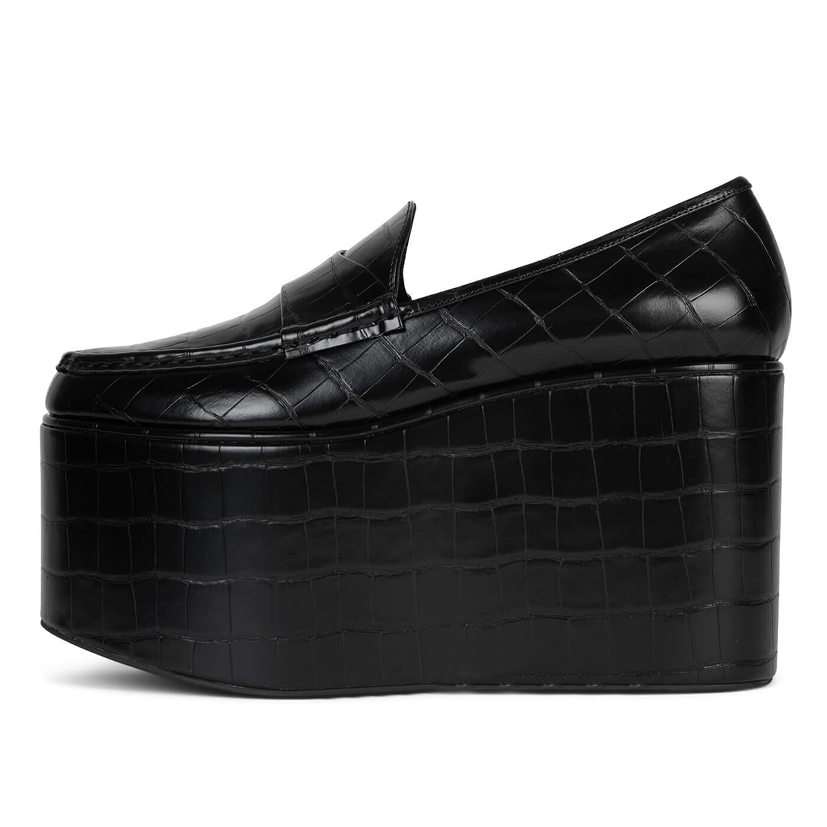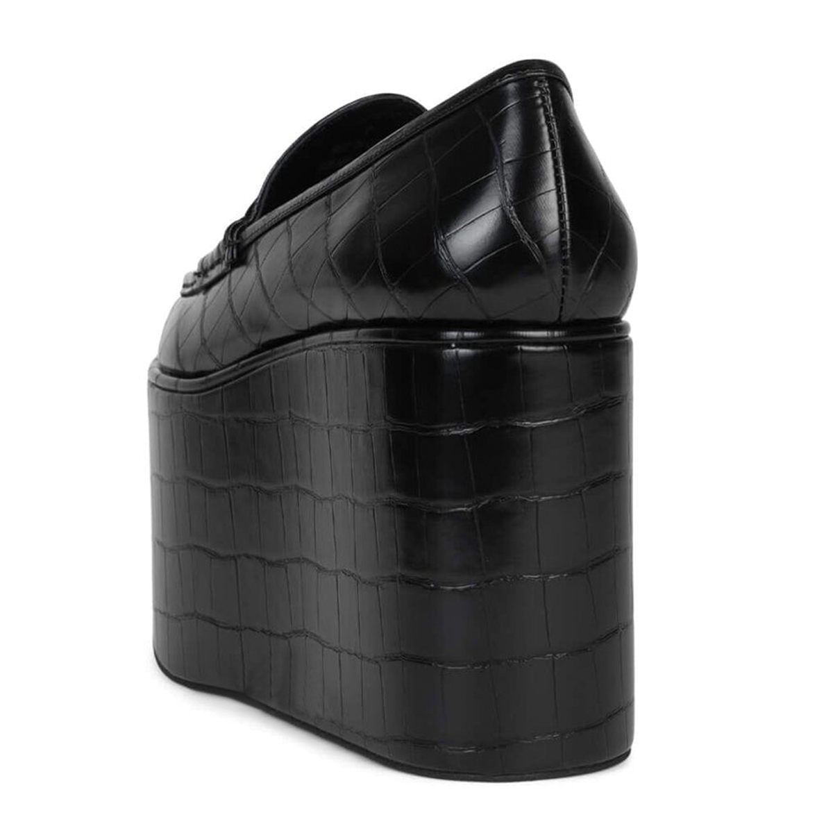 • Special Designs: Black croc embossed loafers with classic wedge heel, bold platform and slip-on convenience.