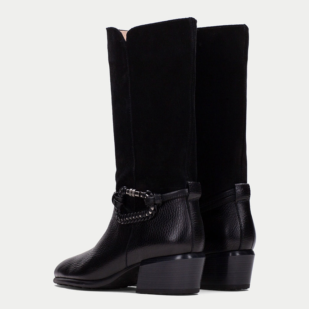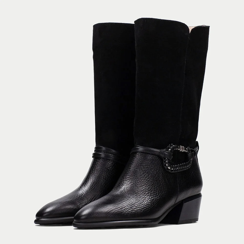 Closed Toe Block Heel Mid Calf Black Cowgirl Boots for Women