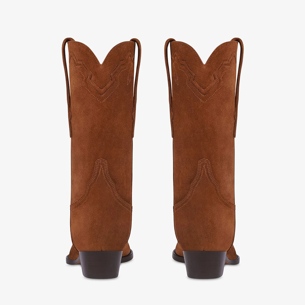 Closed Toe Mid Calf Low Heel Tan Embroidered Western Boots for Women