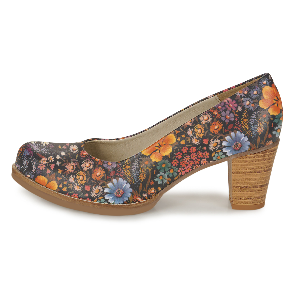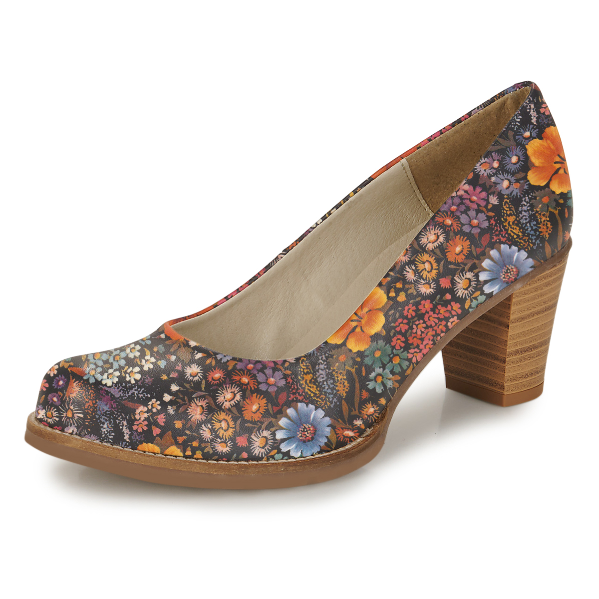 • Special Designs: Colorful floral printed pumps with classic block heel and floral print.