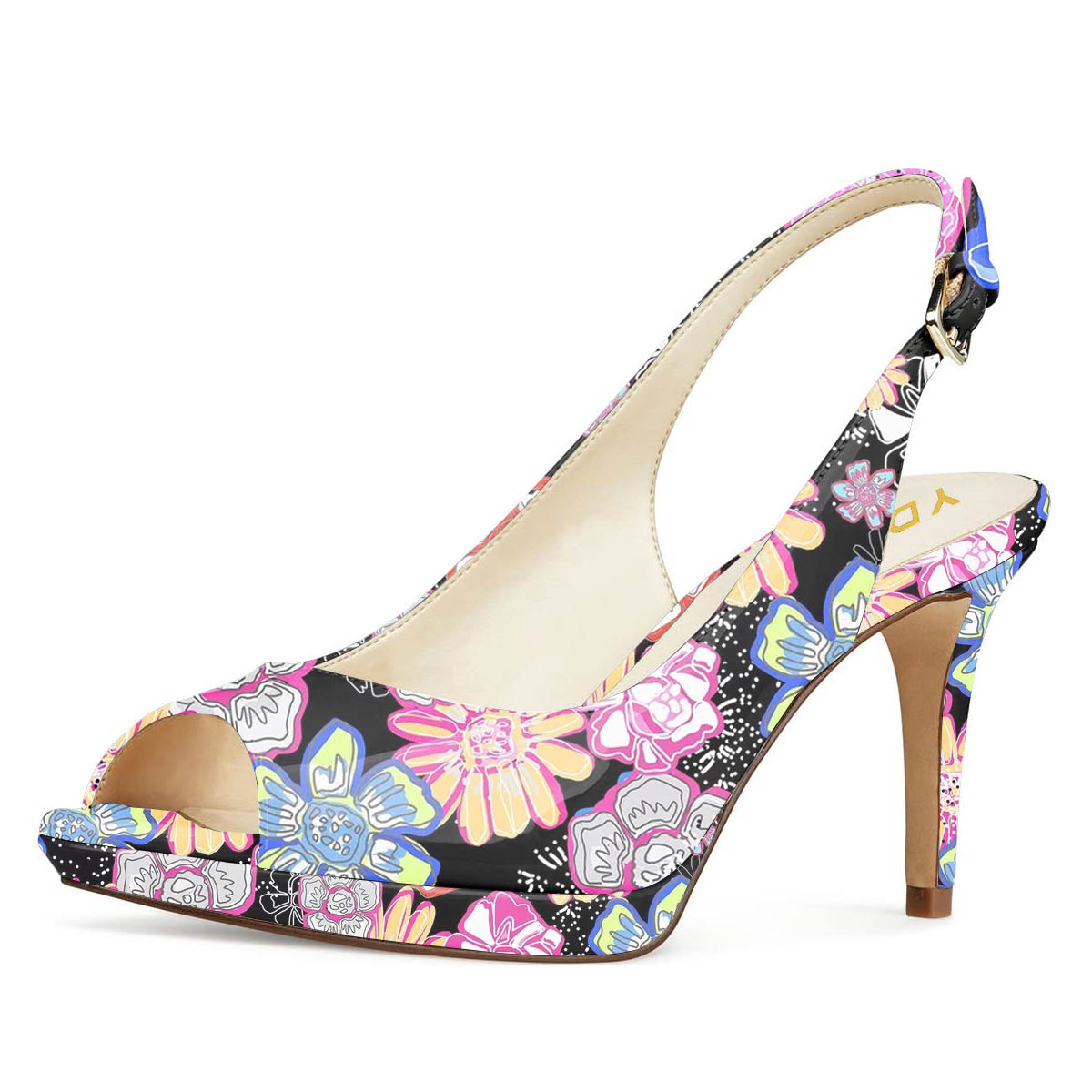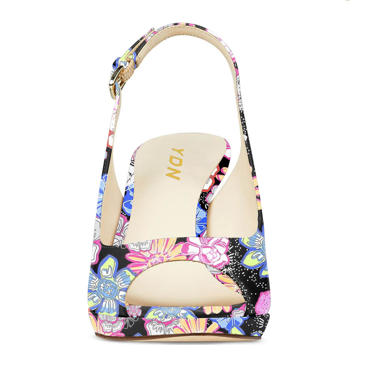• Special Designs: Multicolor enchanting floral printed sandals featuring a buckle fastening slingback strappy design and a bold platform