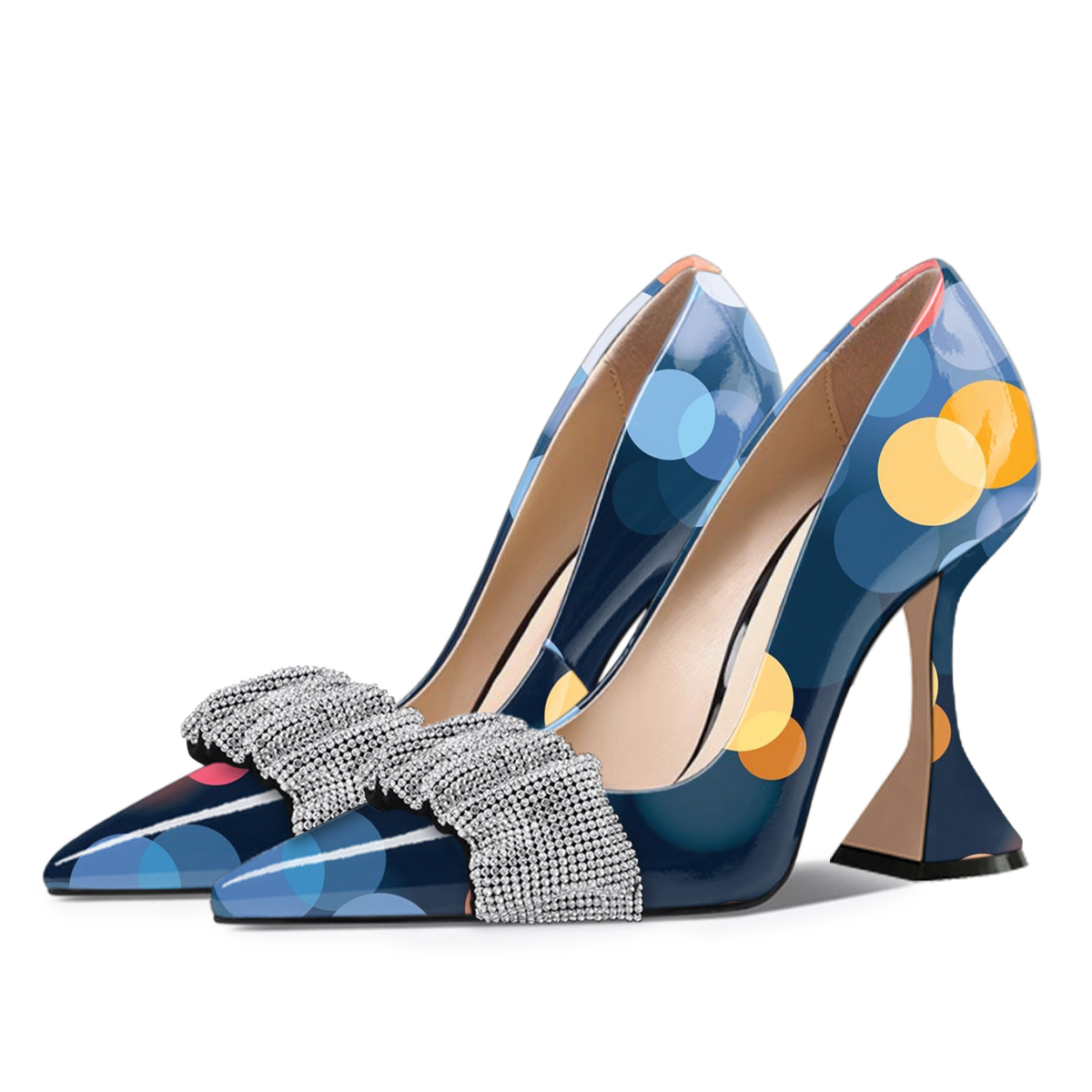 Colorful Printed Patent Leather Rhinestone Embellished High Heels
