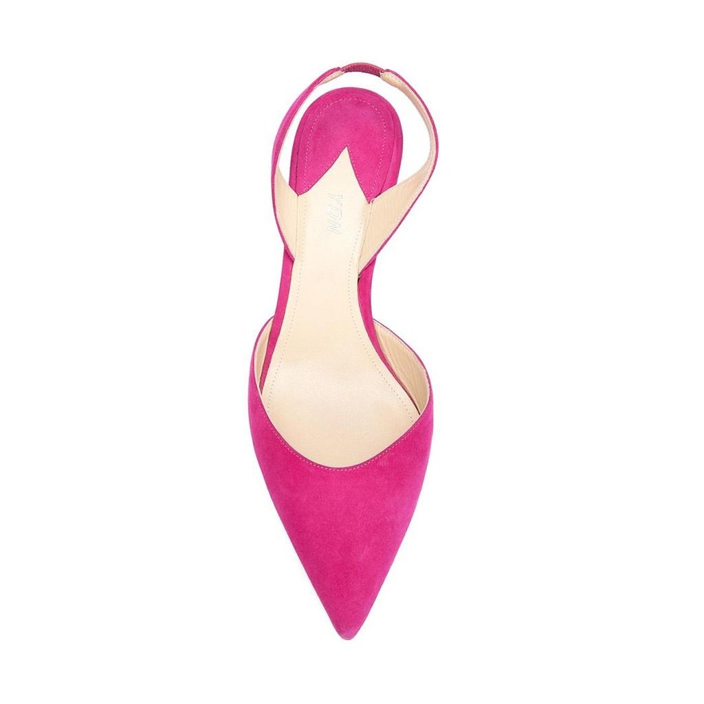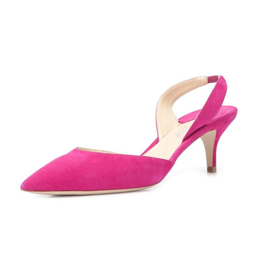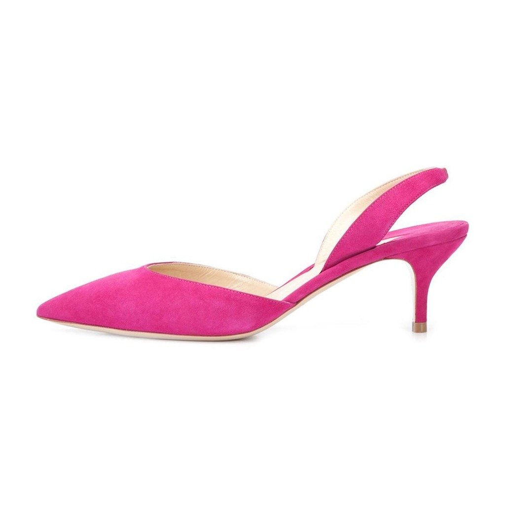 Cute Pink Vegan Suede Kitten Heel Pointed Toe Slingback Pumps