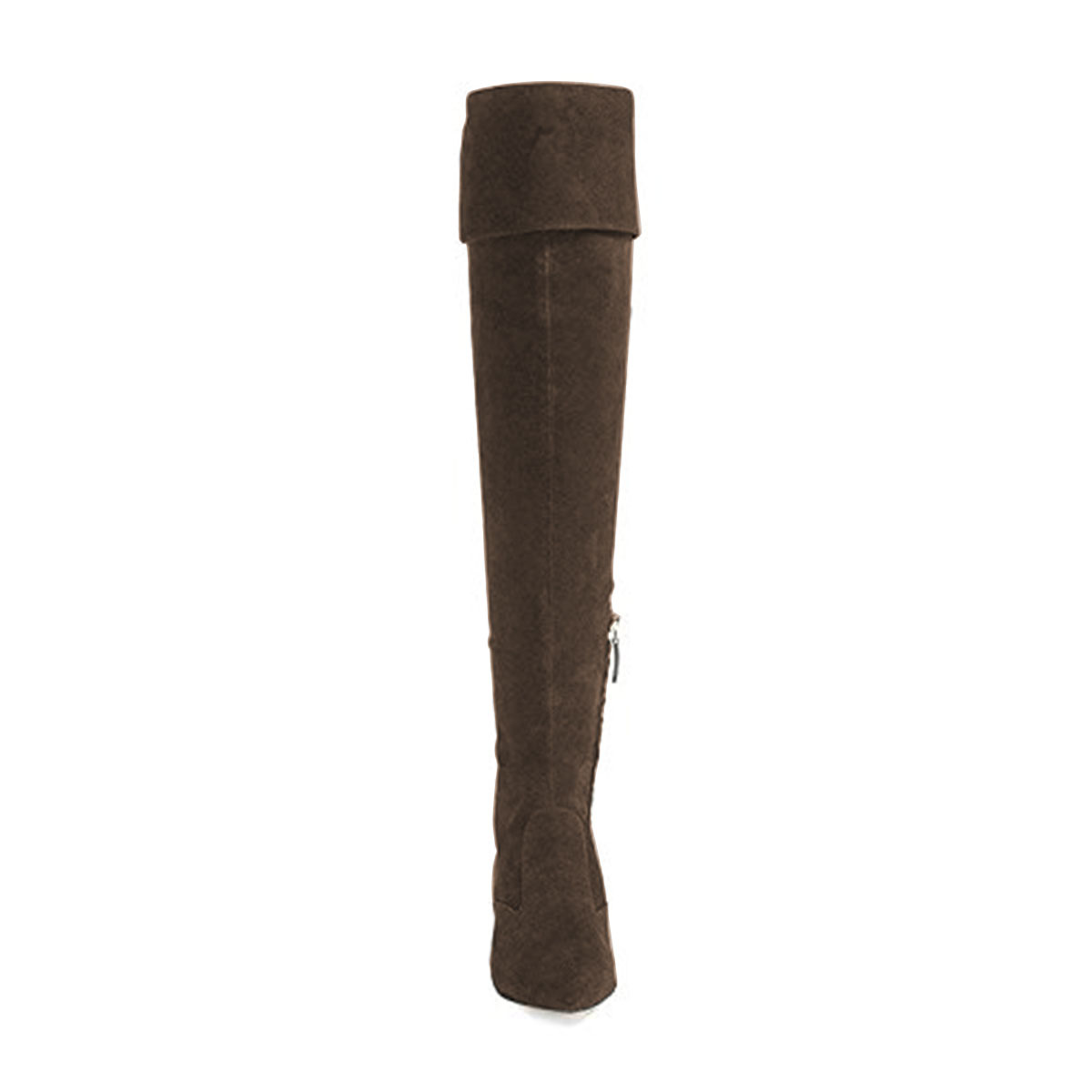 Dark Brown Faux Suede Pointed Toe Over-The-Knee Side-Zip Boots