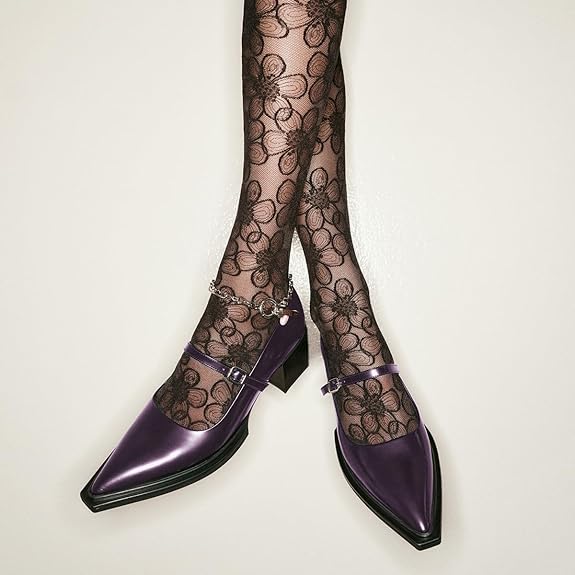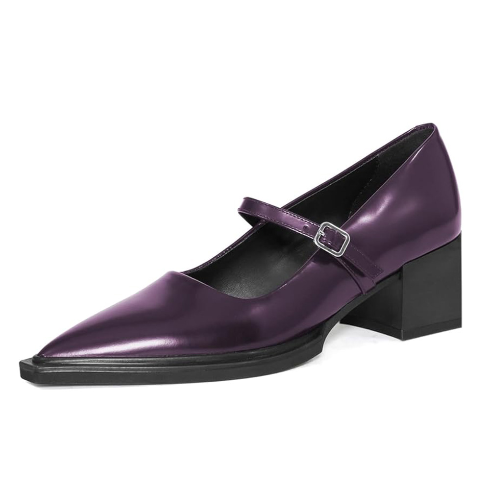 Dark Purple Vegan Leather Pointed Toe Buckle Strap Casual Mary Janes