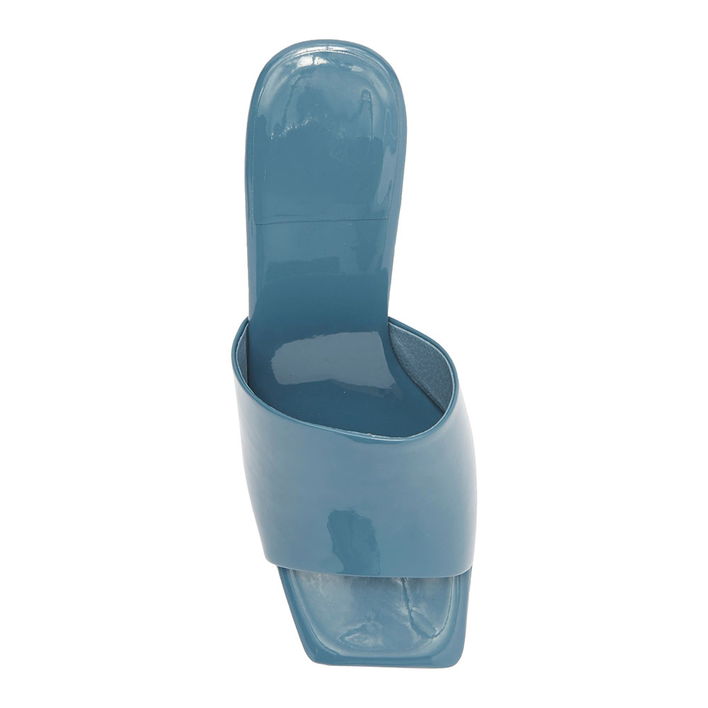 Dusty Blue Square Toe Chunky Heel Wide Strap Slides with Platform