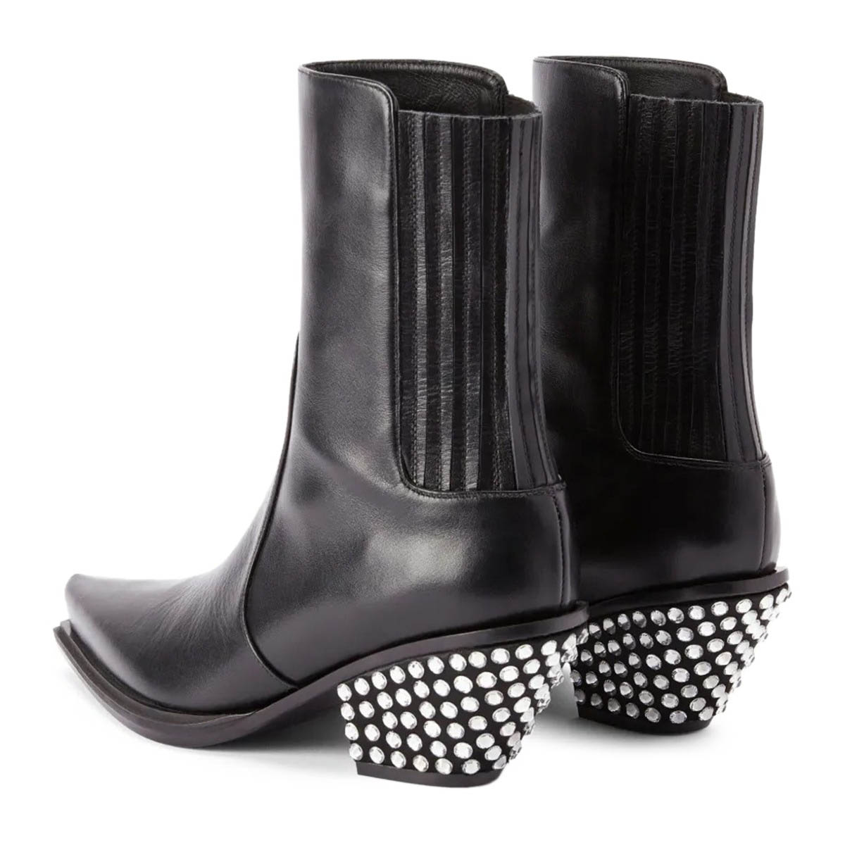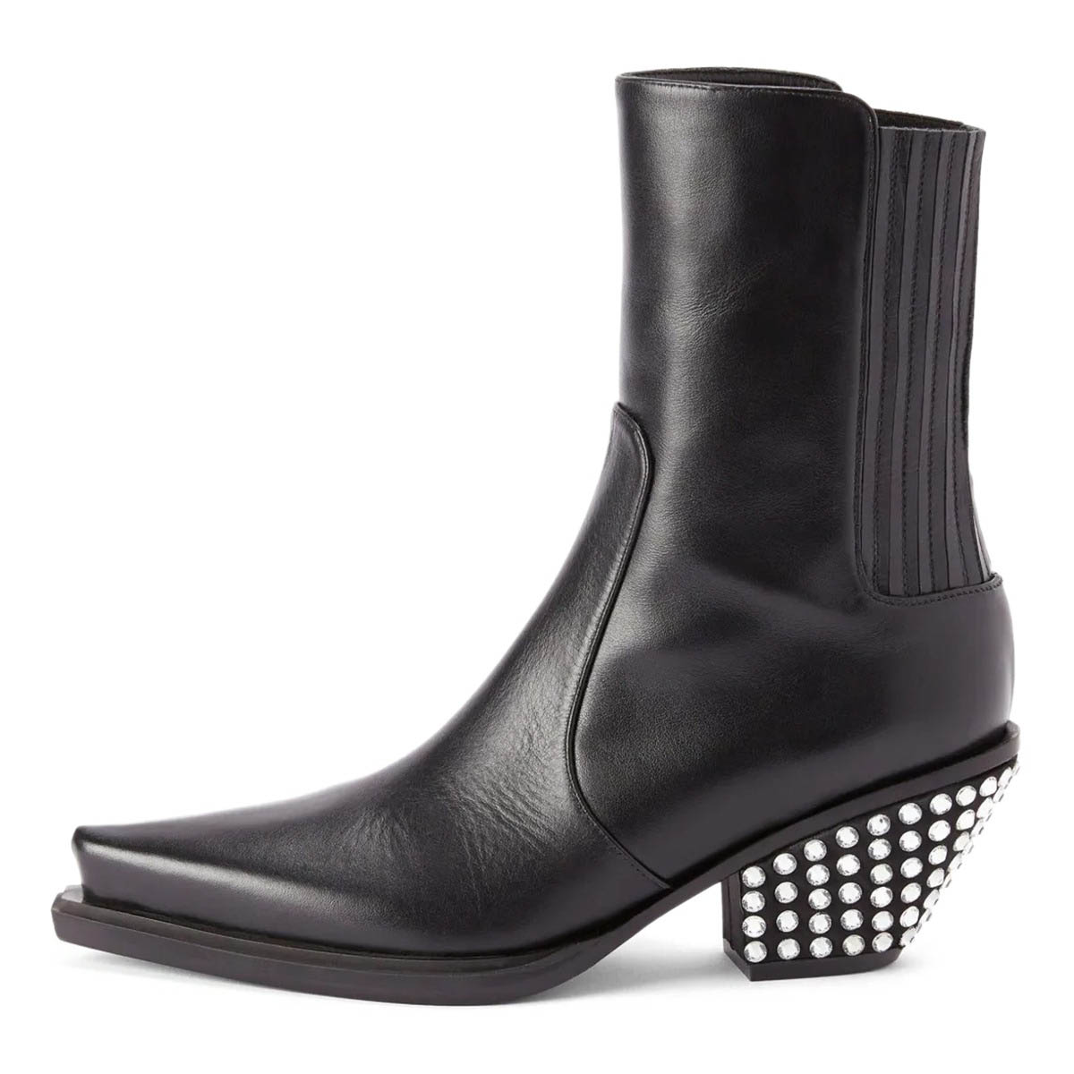 Elegant Black Rhinestone Slip On Pointed Toe Cowboy Boots for Women