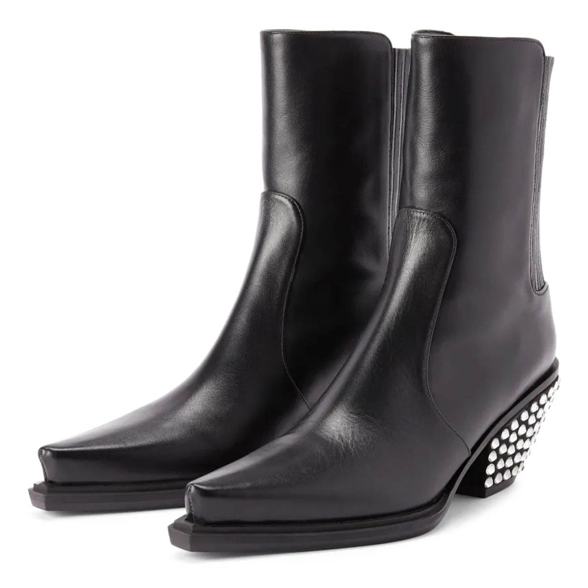Special Designs: The cowgirl boots feature an elegant black color, a mid heel, an ankle-length design, and a slip-on style.