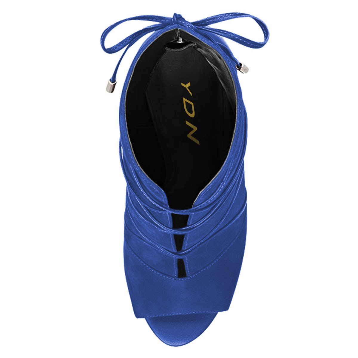Elegant Blue Faux Suede Peep Toe Back-Zip Over All Lace-Up High Heels