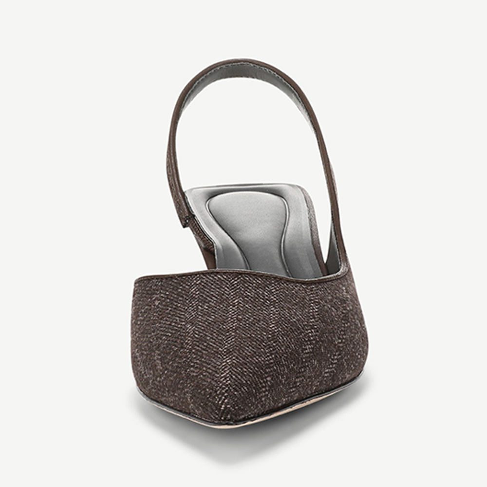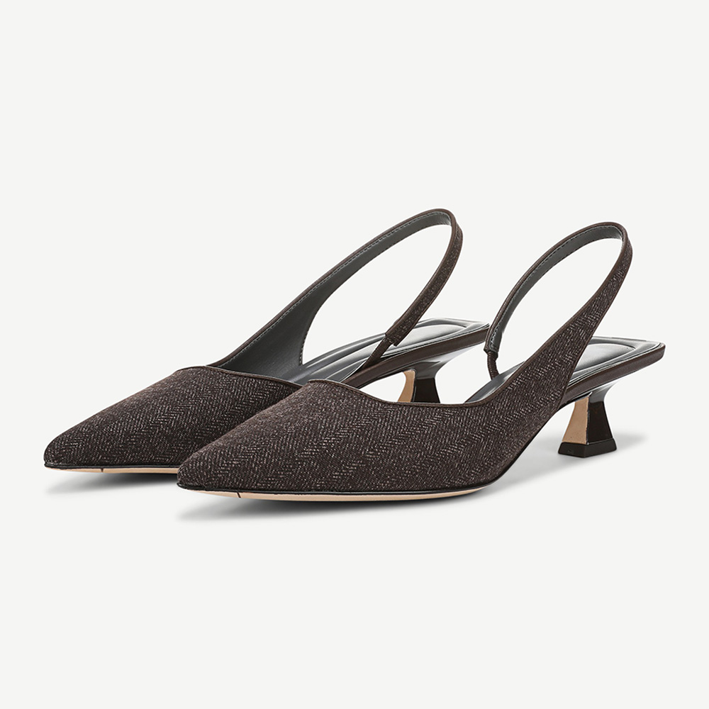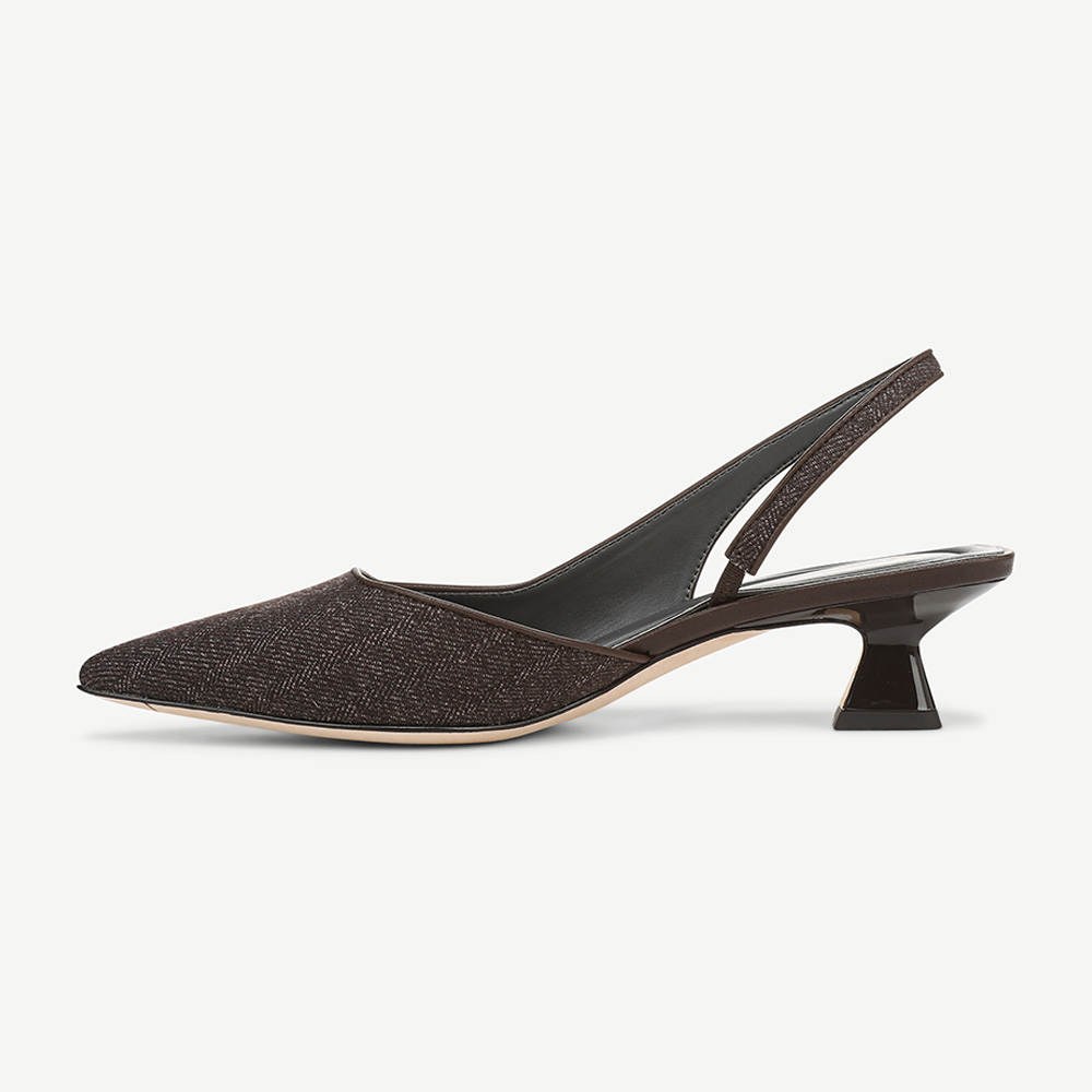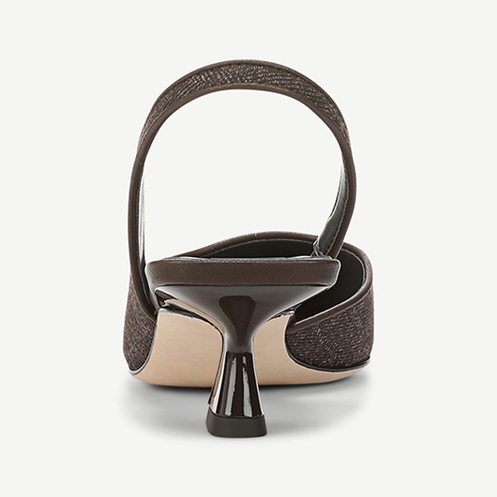 Elegant Chocolate Brown Fabric Slingback Low Heel Pumps for Women