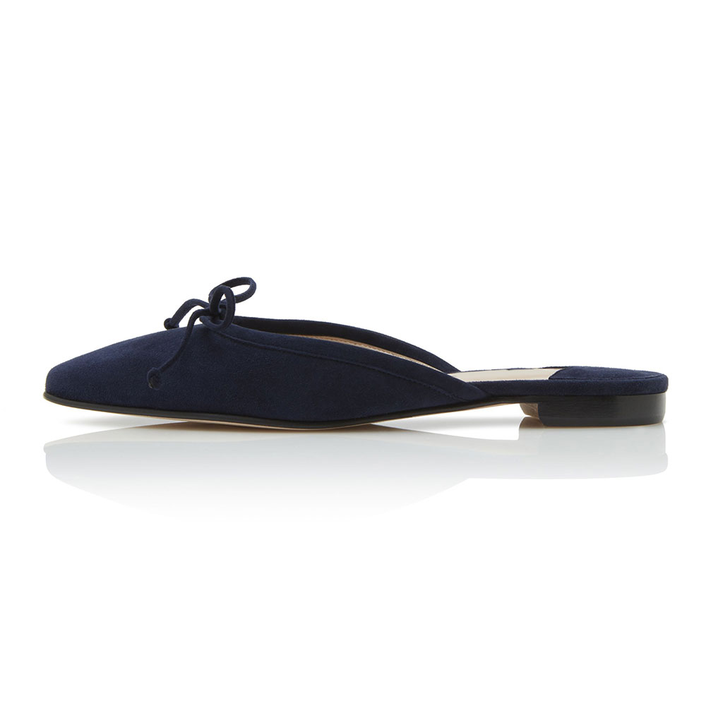 Elegant Navy Almond Toe Slip On Flat Bow Mule Shoes for Women