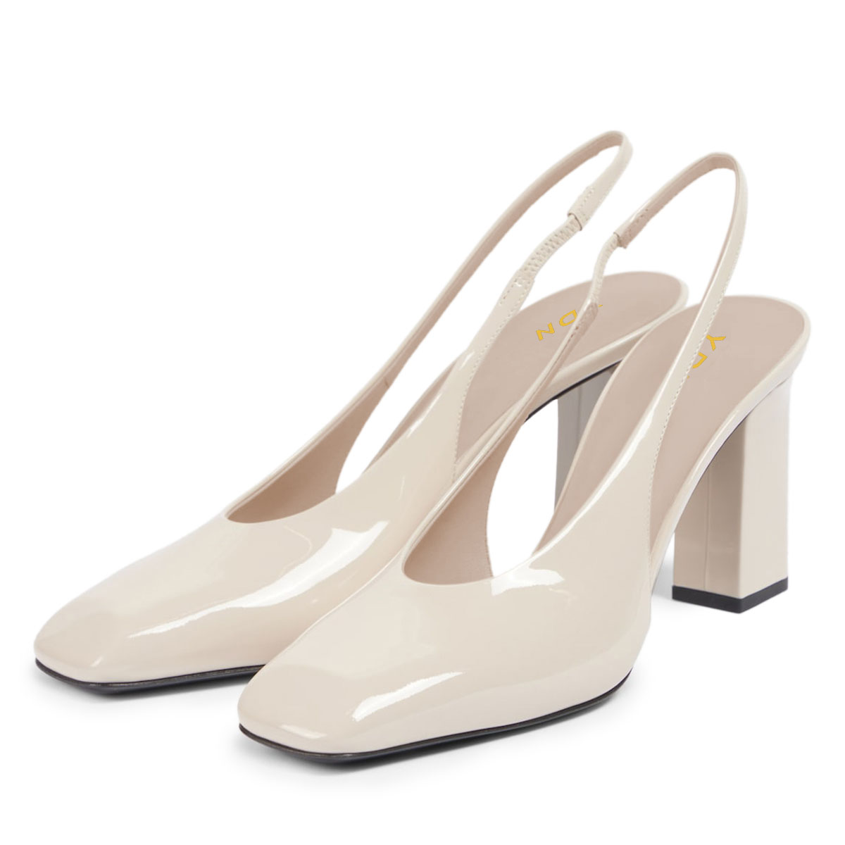 Elegant Patent Leather Square Toe Slingback Heels in Beige