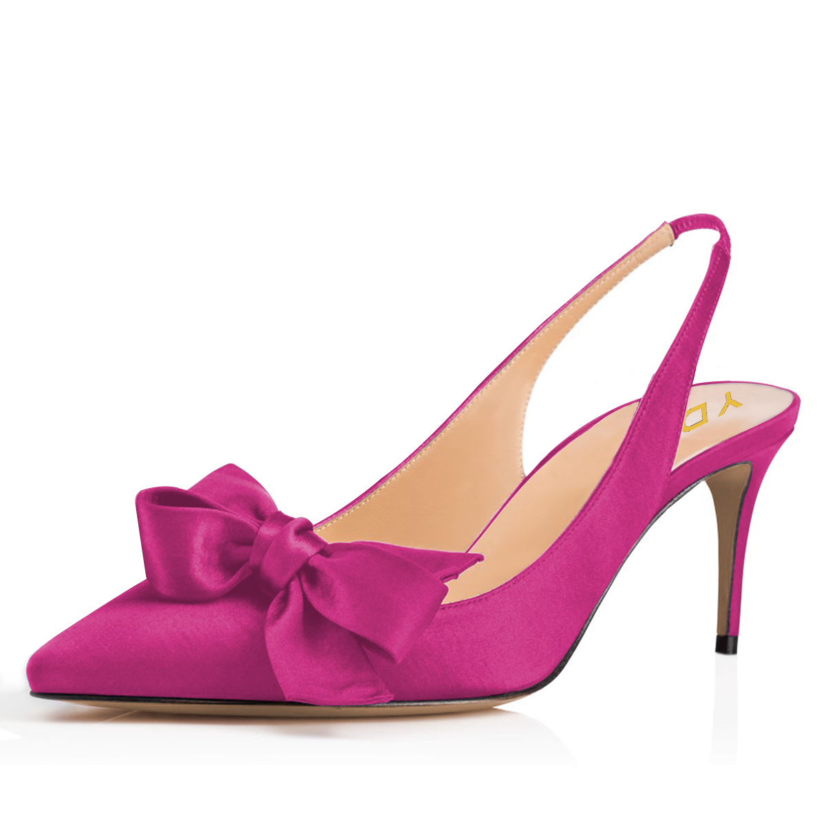 Elegant Pink Satin Slingback Bow Inlay Party Heels for Women