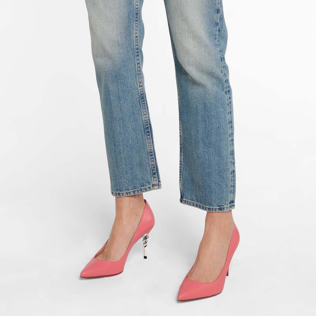 Elegant Vegan Leather Decorative Heel Pointed Toe Pink Pumps