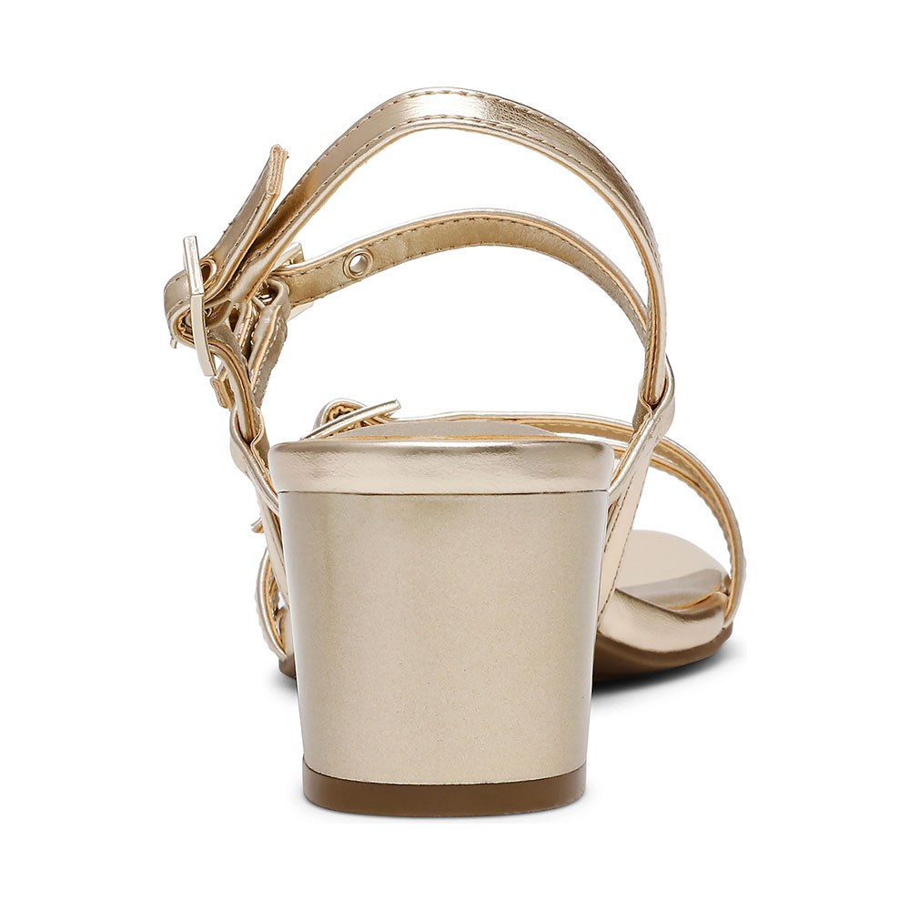 Eye-Catching Gold Metallic Block Heel Multiple Straps Women's Sandals