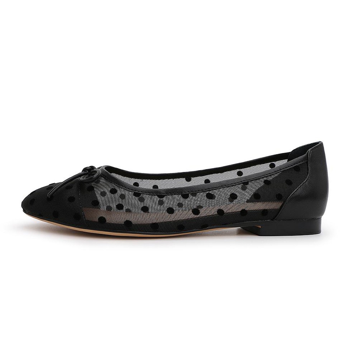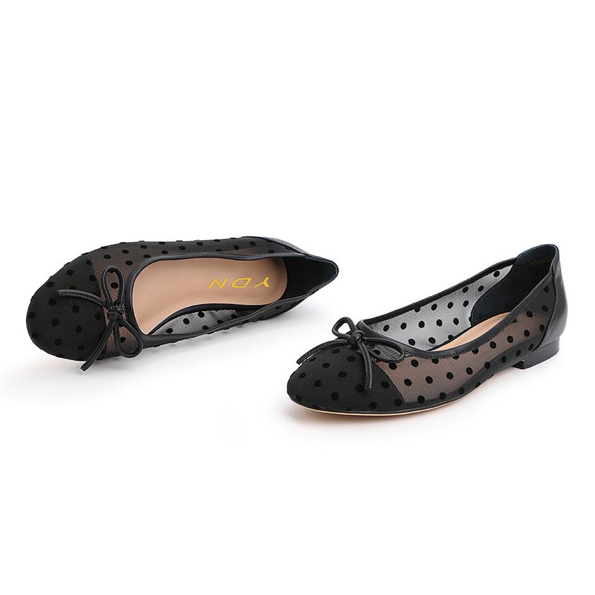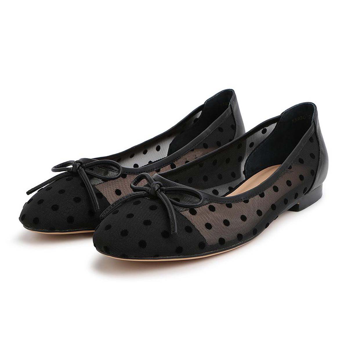 Special Designs: The black ballet flats feature a sheer polka-dot mesh design, a cute bow detail on the toe, and a flat sole.