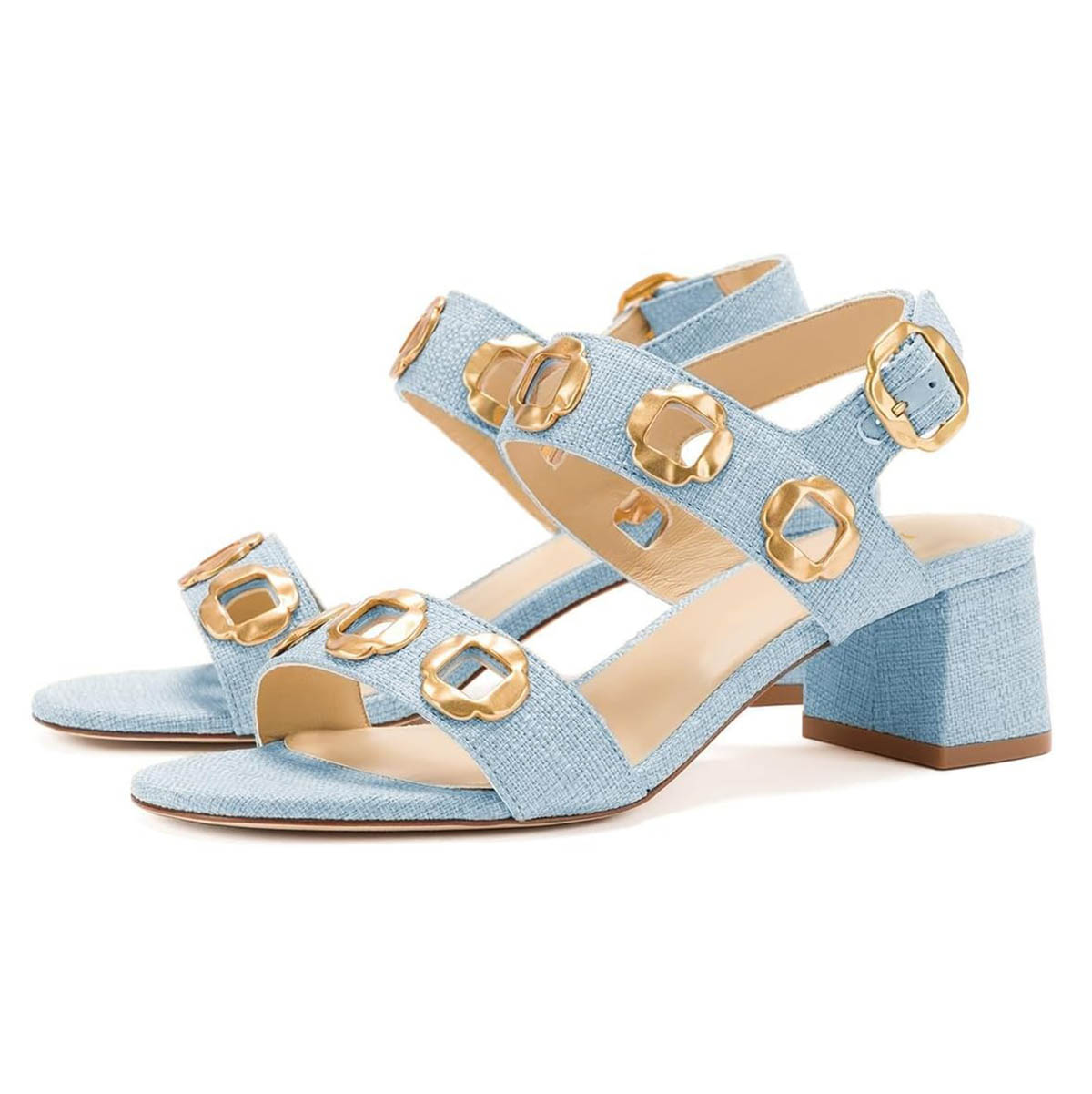 • Special Designs: The open-toe summer sandals feature metal decor cut-out straps and an adjustable buckled ankle strap.