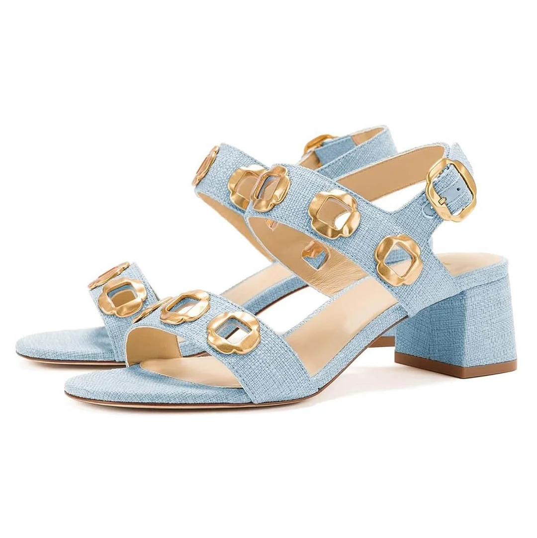 Fashion Blue Open Toe Ankle Strap Buckle Cut Out Low Heel Sandals