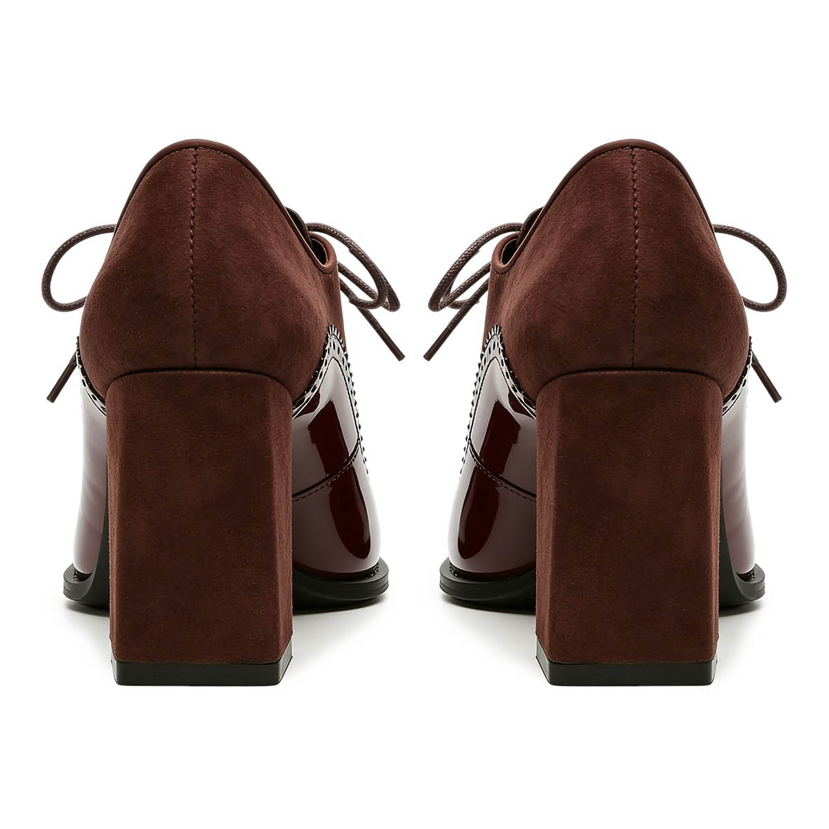 • Special Designs: These oxford shoes feature a pointed toe, a low chunky heel, and a lace-up design.