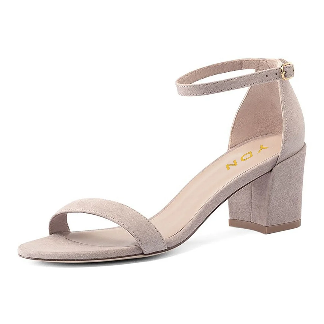 Fashion Open Round Toe Chunky Heel Buckle Ankle Strap Nude Sandals