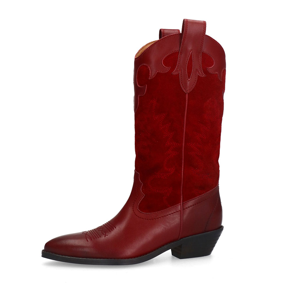 Fashion Red Pointed Toe Western Boots for Women with Embroidered