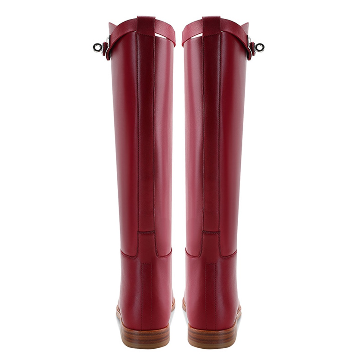 Special Designs: The flat boots feature a knee-high length, a closed toe, an iconic silver buckle, and a slip-on design.
