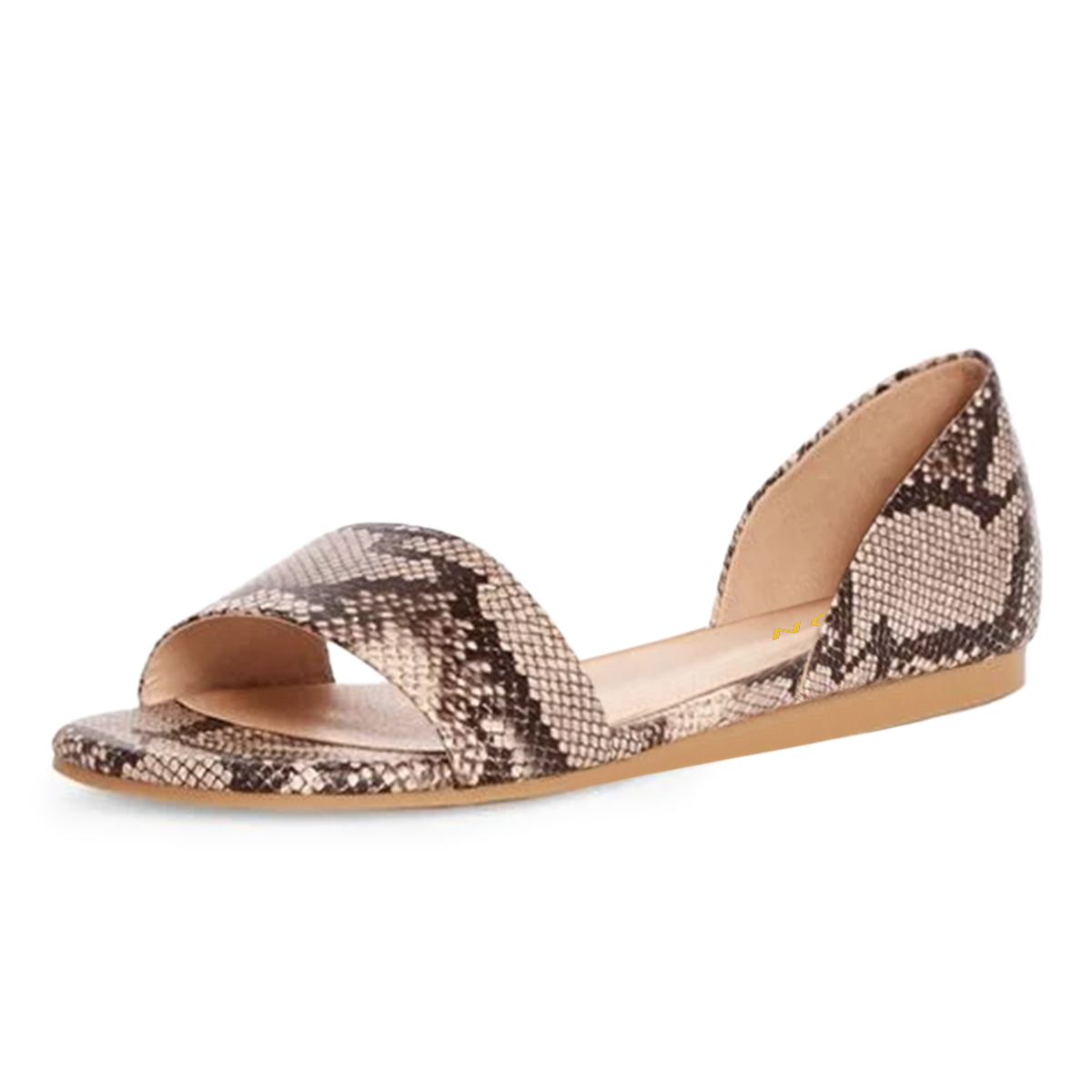 Fashionable Taupe Vegan Leather Open-Toe Flat Comfy Python Sandals