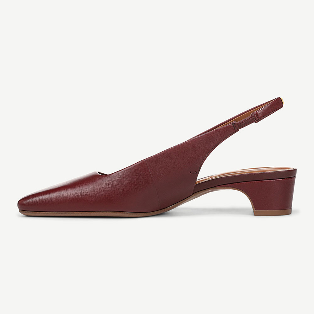 Faux Leather Chunky Heel Slingback Stretch Pumps Shoes in Maroon
