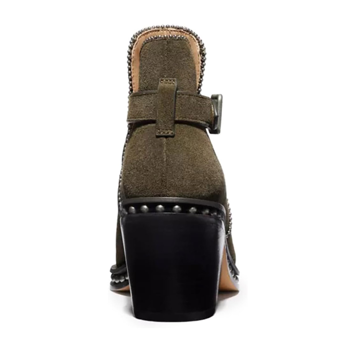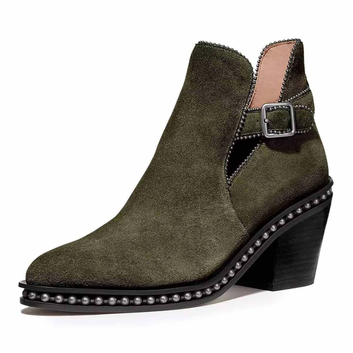 Faux Suede Ankle Strap Studded Olive Chunky Heel Short Boots for Women