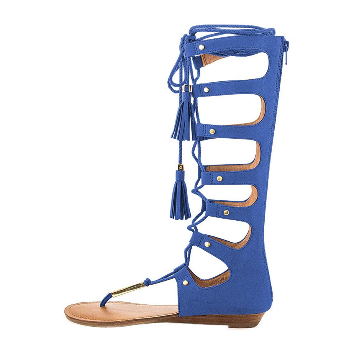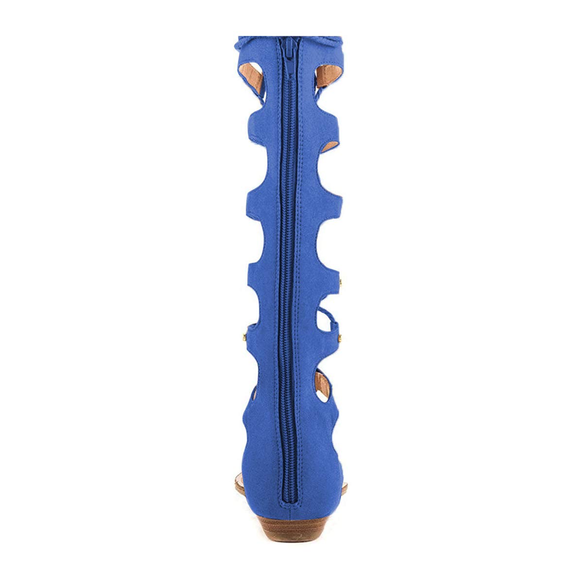 Faux Suede Cut-Out Lace-Up Knee High Flat Gladiator Booties in Blue