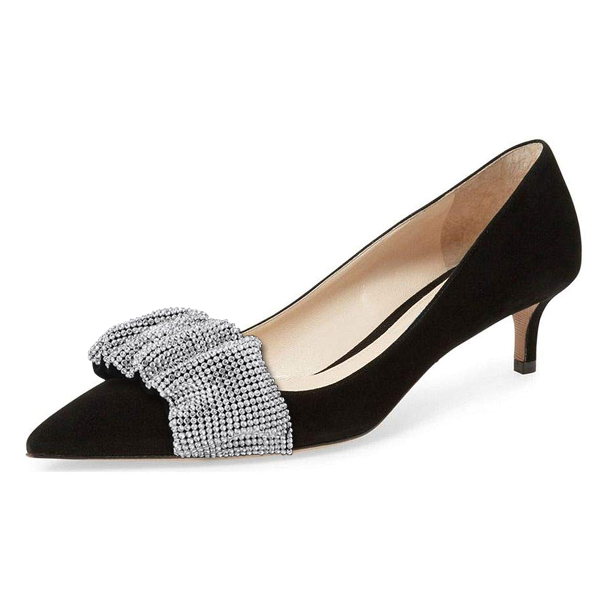 Faux Suede Pointed Rhinestone Embellished Black Kitten Heels