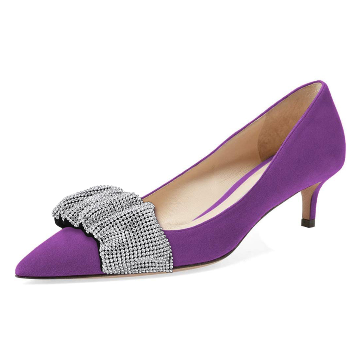 Faux Suede Pointed Rhinestone Embellished Purple Pumps for Women