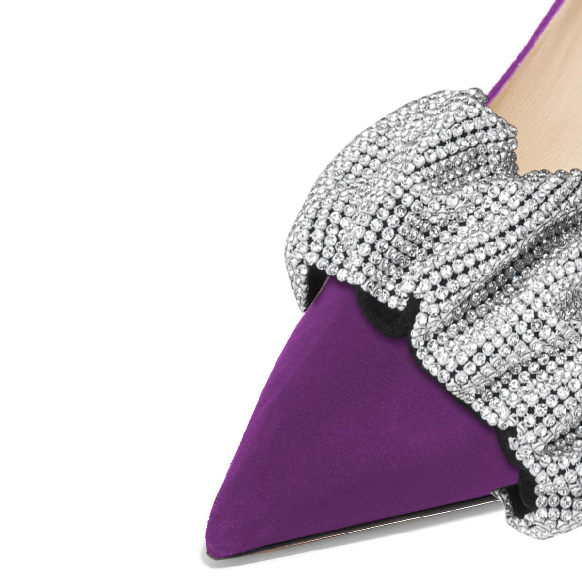 • Special Designs: Purple pumps with faux suede sophistication and sparkling rhinestone embellishment.
