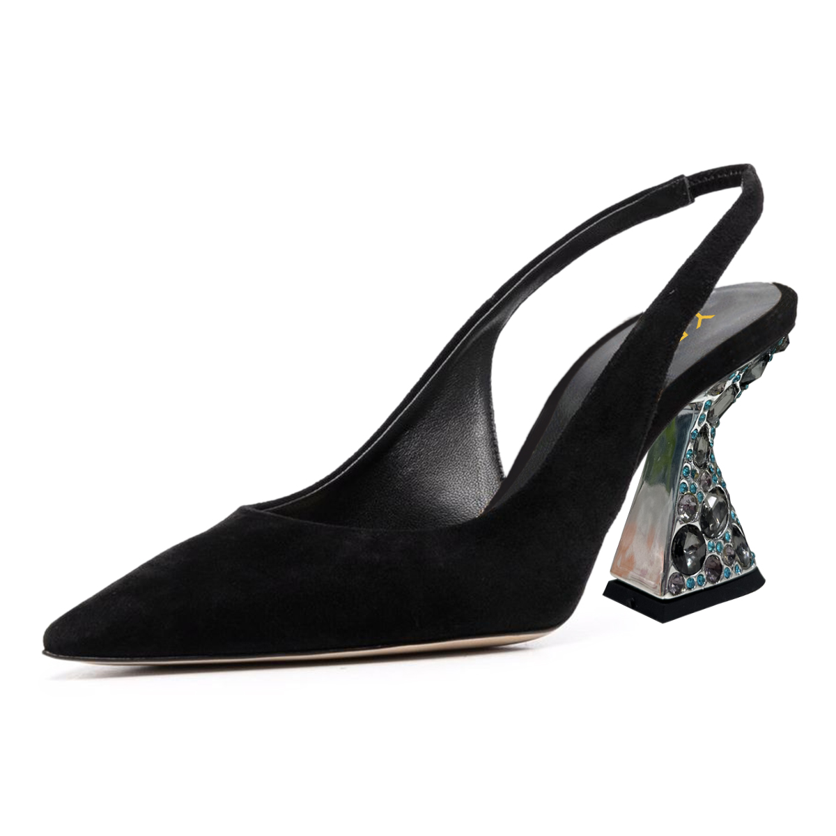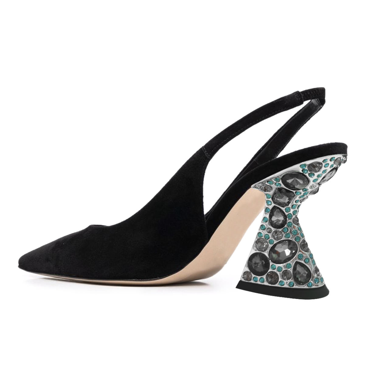 Faux Suede Pointed Rhinestone Embellished Slingback Pumps in Black